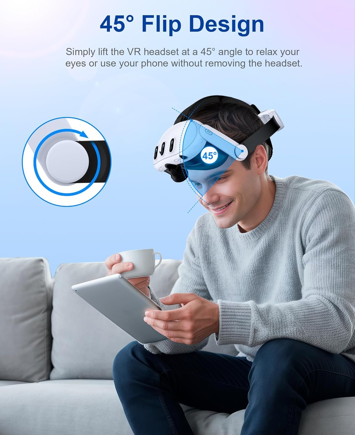 Instantly See the Real World with the 45° Flip-Up Hinge: Stay in your game without taking off the headset. Our unique hinge lets you quickly flip up your Meta Quest to check your phone, chat, or take a drink, then snap it right back into place. Perfect for staying connected and comfortable.