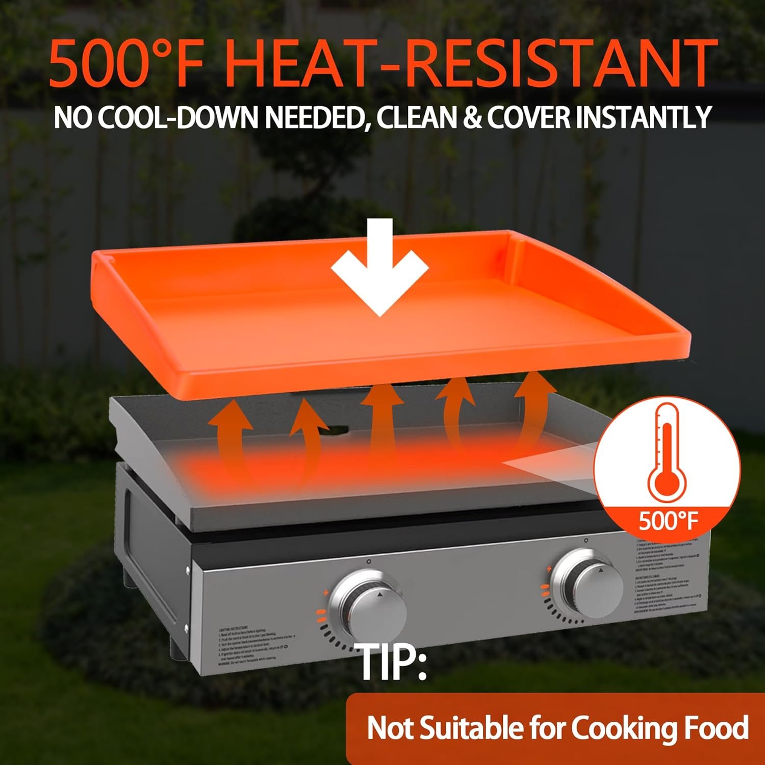 [Durable and Long-lasting] The silicone griddle mat can handle heat up to 500℉, you can put this cover on while the griddle is still hot. Important reminder: The silicone cover can only be used when the surface temperature of the griddle is below 500℉.