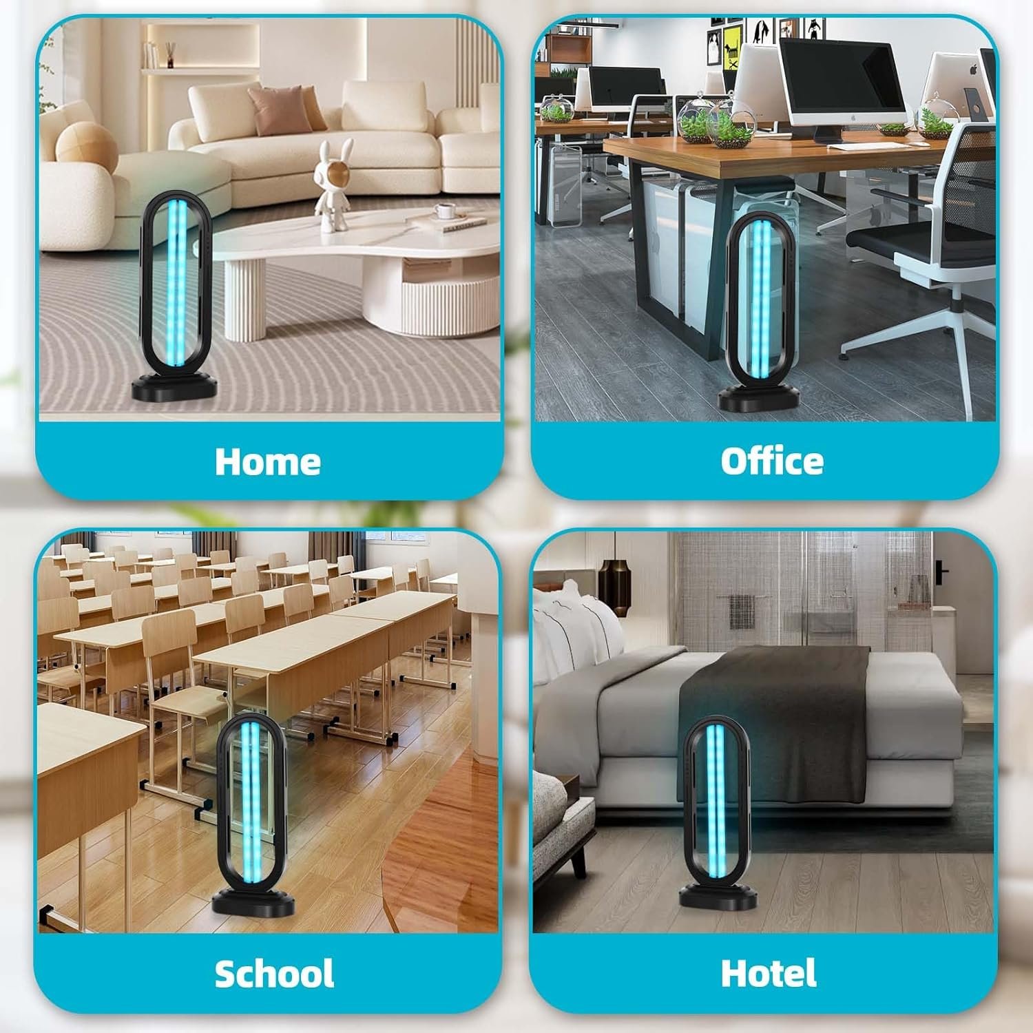 Use Anytime, Anywhere: UV lamps can cover an area of ​​430 square feet, making them ideal for homes, kitchens, bedrooms, offices, hotels, schools and other places.