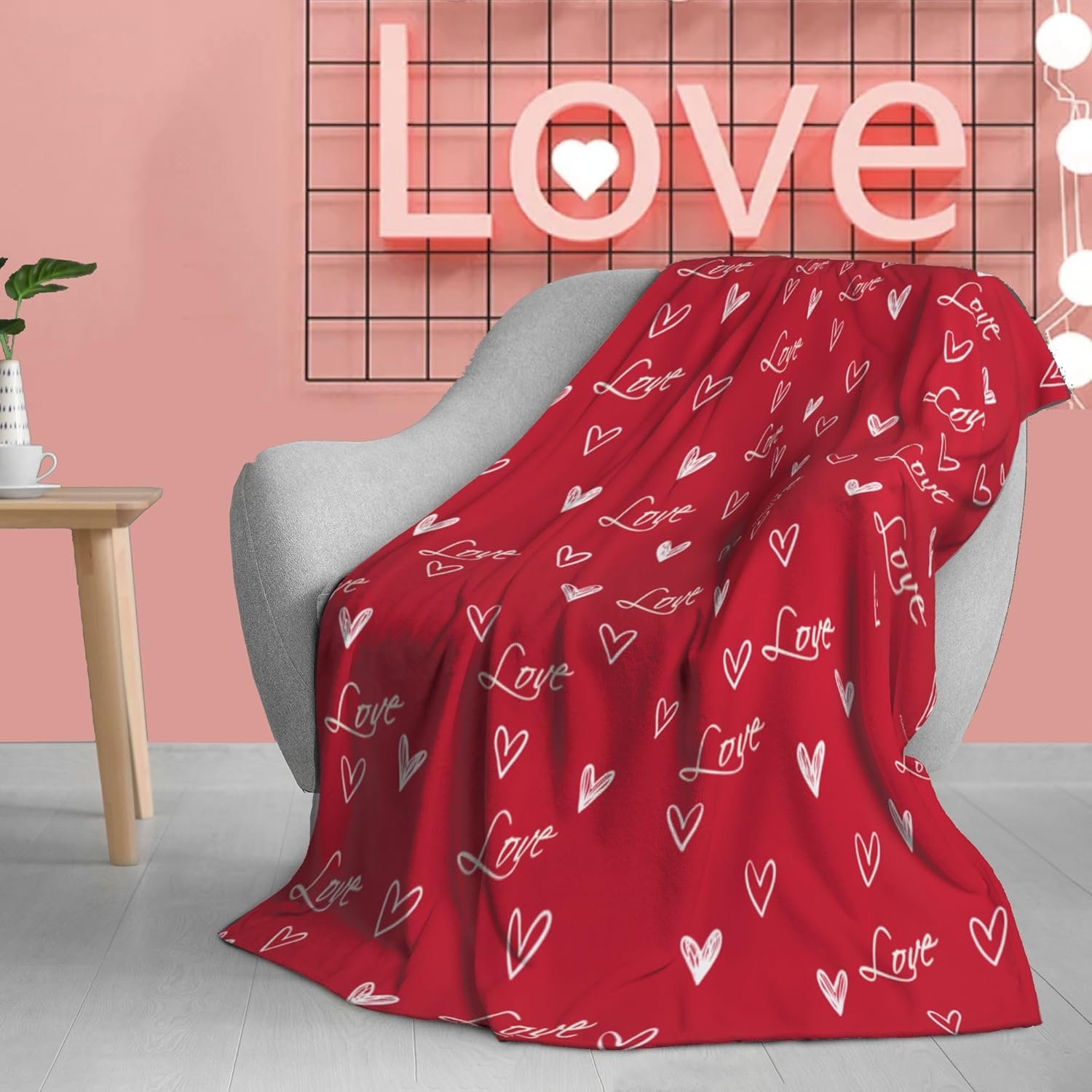 Elegant Love Blanket: This festive blanket features a loving heart plaid with a “Love” slogan display modern and farmhouse styles. A great decoration for your home during the Valentine’s Day season. The Valentine’s Day flannel blanket blends excellently in any environment and brings a refreshing visual enjoyment.