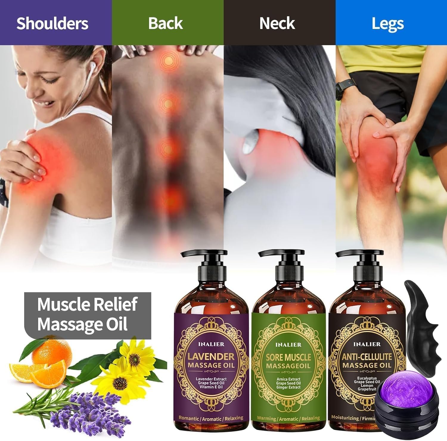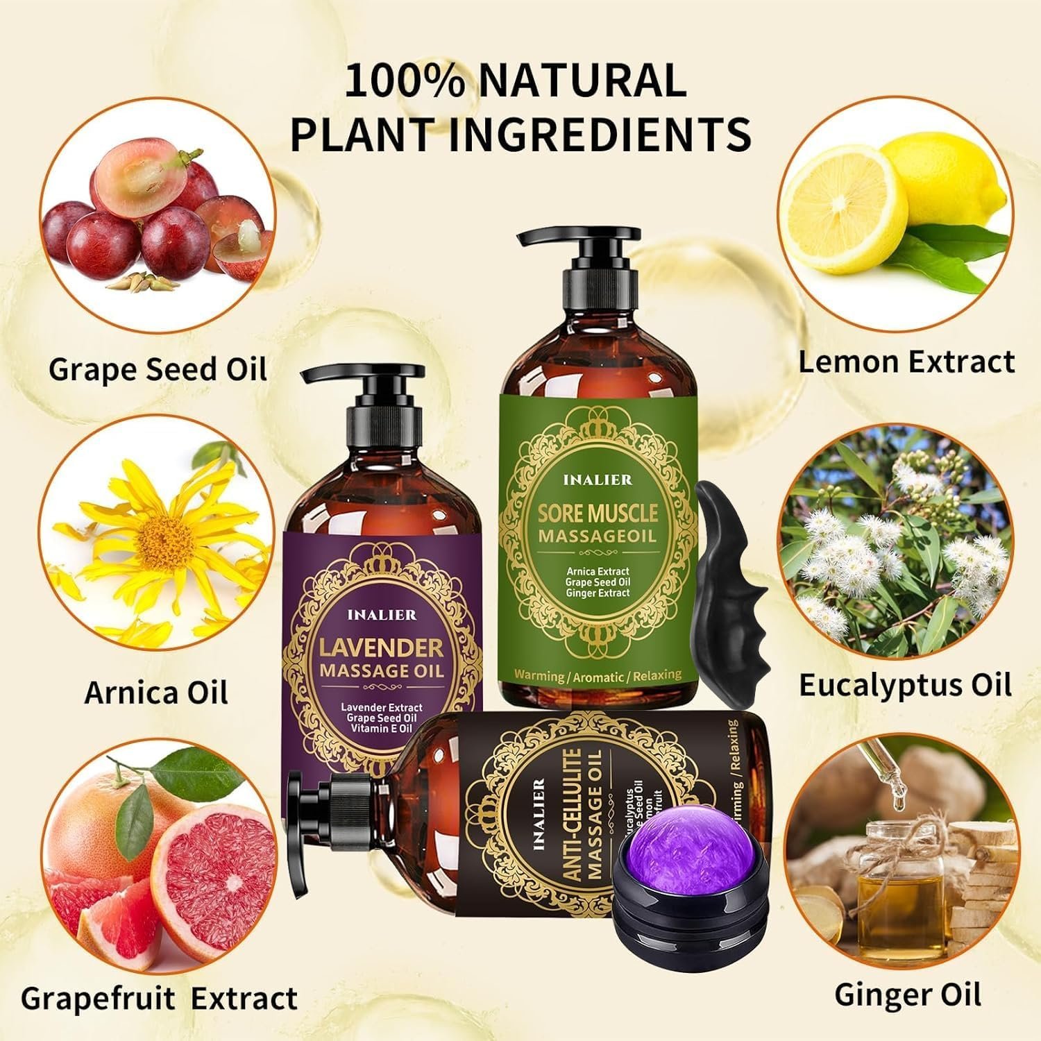 Anti-Cellulite Massage Oil: Massage Oil for Massage Therapy Crafted with a unique blend of beneficial ingredients. Eucalyptus and grapefruit essential oils together with grapeseed oil greatly contributes to our massage oil’s moisturizing skin properties.will help moisturize,tone cellulite from your abdomen, thighs and legs, even remove stretch marks. Minimize the look of cellulite and relax sore muscles.