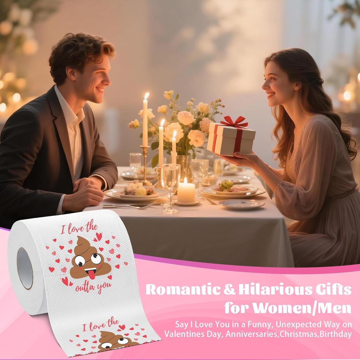 【Funny Couple Gifts for Men Women on Any Occasion】Not just for Valentine’s Day, this novelty toilet paper makes a hilarious gift for any moment worth celebrating. It works perfectly as anniversary gifts, birthday present, Christmas gifts, couple gifts, or a light-hearted joke between friends. Whether you’re gifting it to a boyfriend, girlfriend, husband, wife, best friend, coworker, or anyone who loves a good laugh, this playful roll brings instant joy and unforgettable reactions.