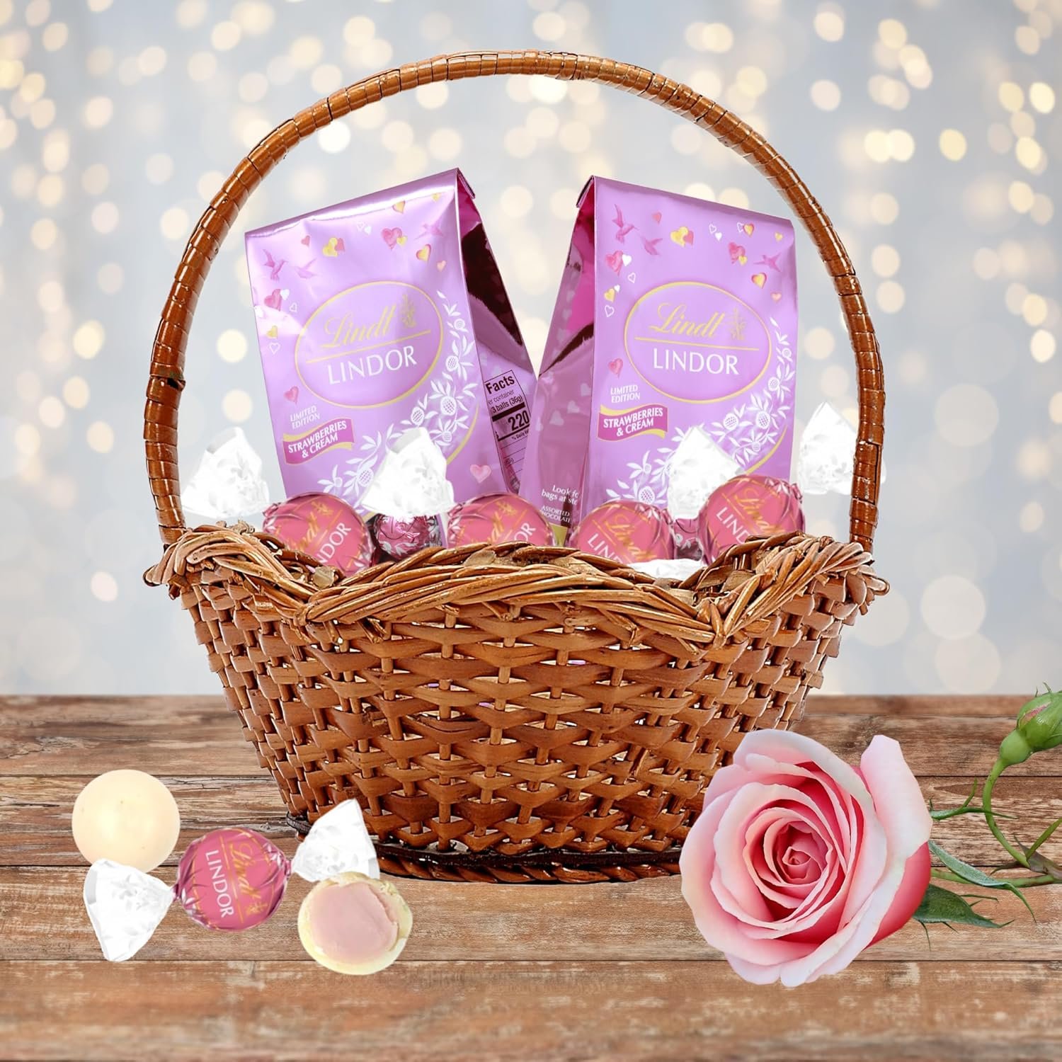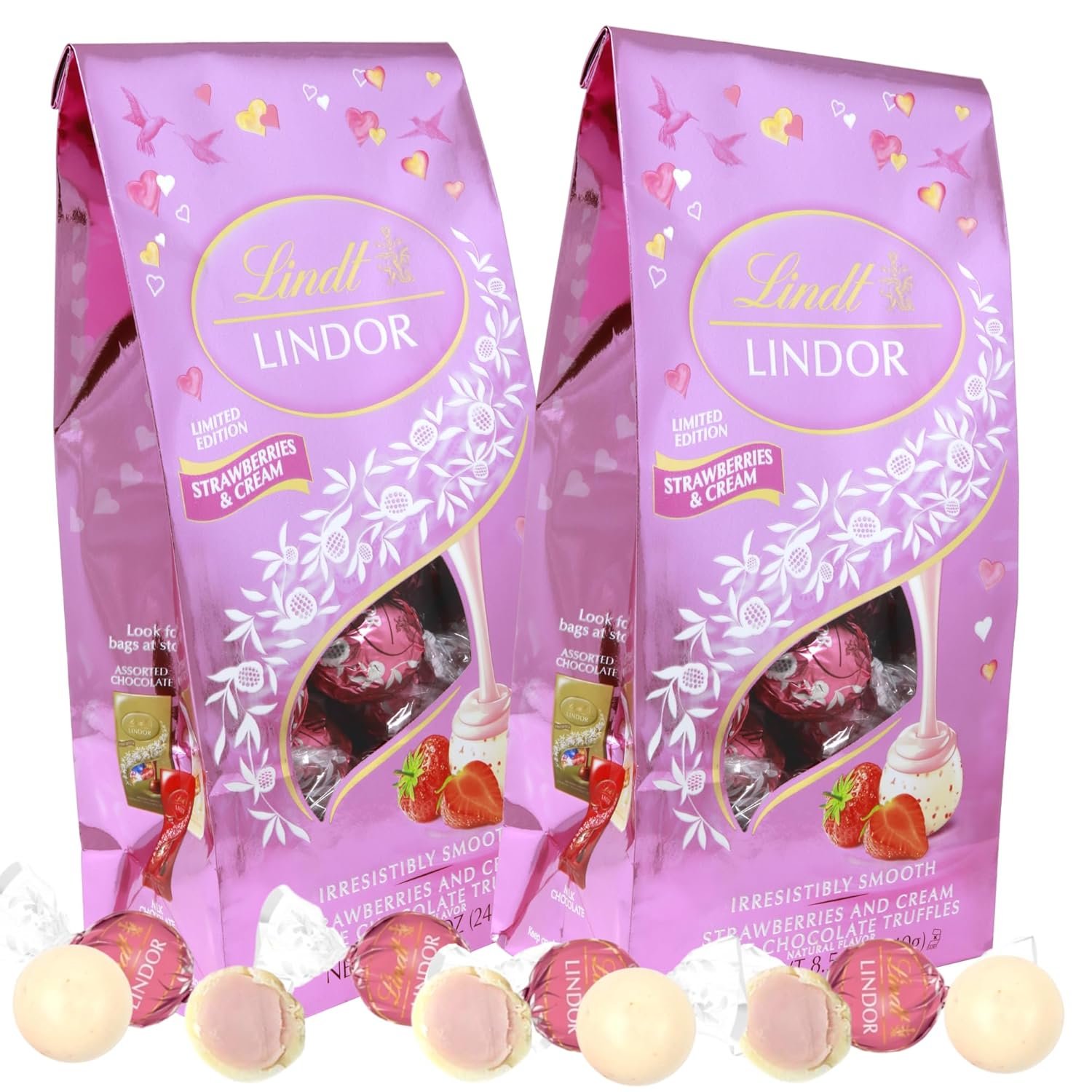 Indulge in the decadent sweetness of Valentine’s Strawberries and Cream White Chocolate Truffles. This limited-edition treat combines a creamy white chocolate shell with a luscious strawberries and cream filling, perfect for Valentine’s Day gift baskets or party favors. Each pack contains 5.1 ounces of individually wrapped truffles, offering a delightful treat for any special occasion.