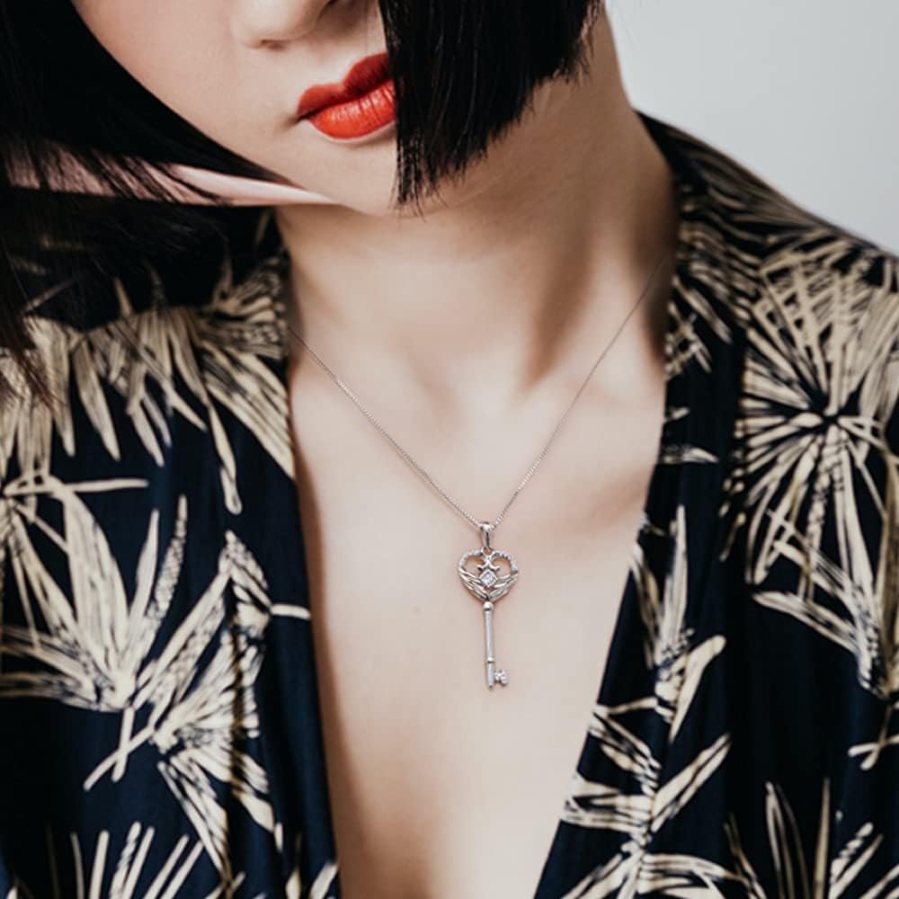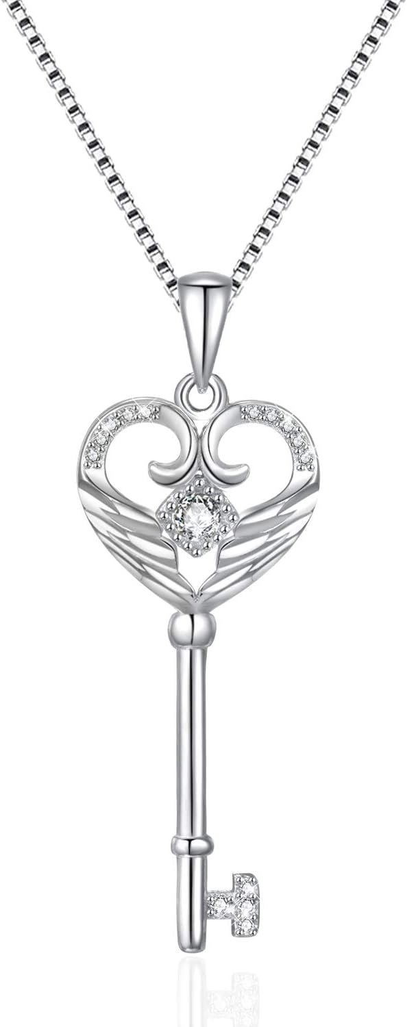 π Women 925 Sterling Silver Angel Wings Key for Love Heart Necklace for Girlπ