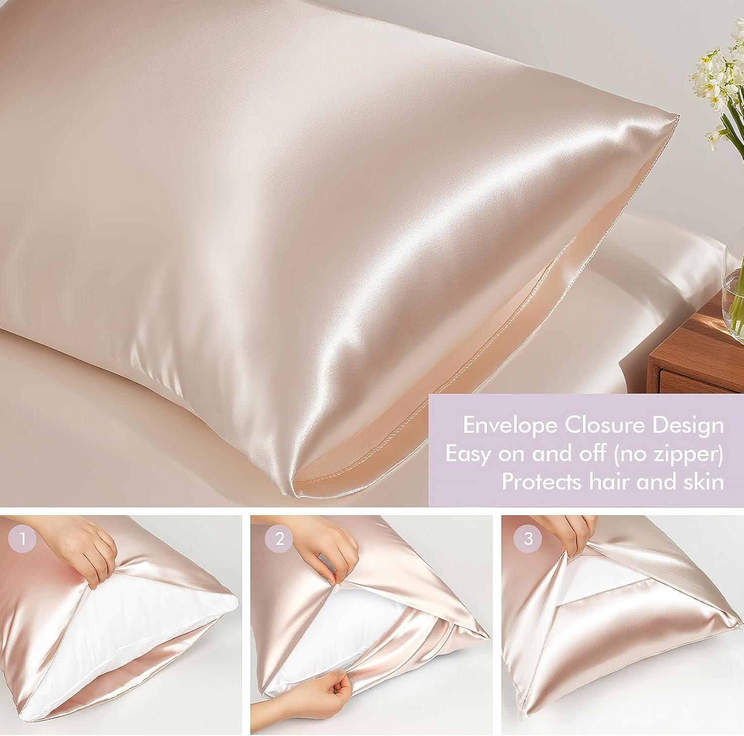 COMPLETE BEAUTY SLEEP SET: Elevate your nightly routine with our vegan silk pillowcase set. This luxurious 3-item ensemble includes a standard size satin pillowcase (26inchX20inch), a satin eye mask, and a matching scrunchie. Whether at home or on the go, this set provides everything you need for a restful sleep.