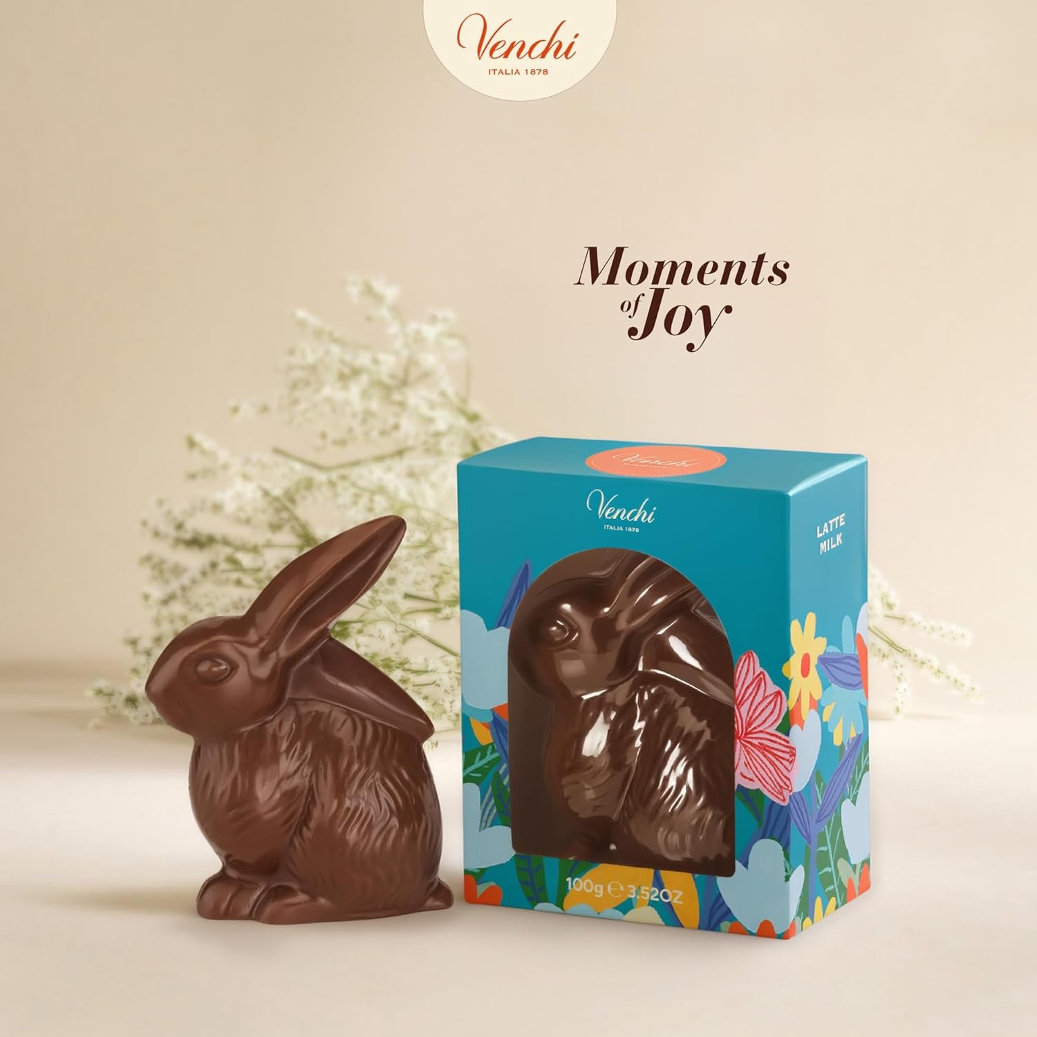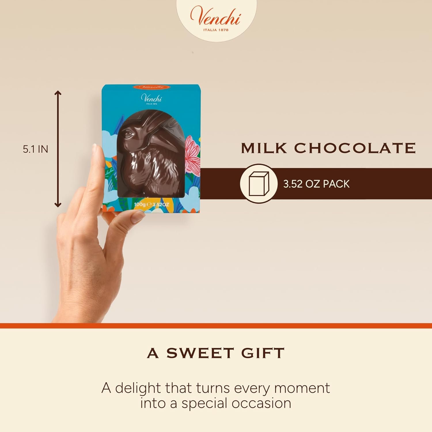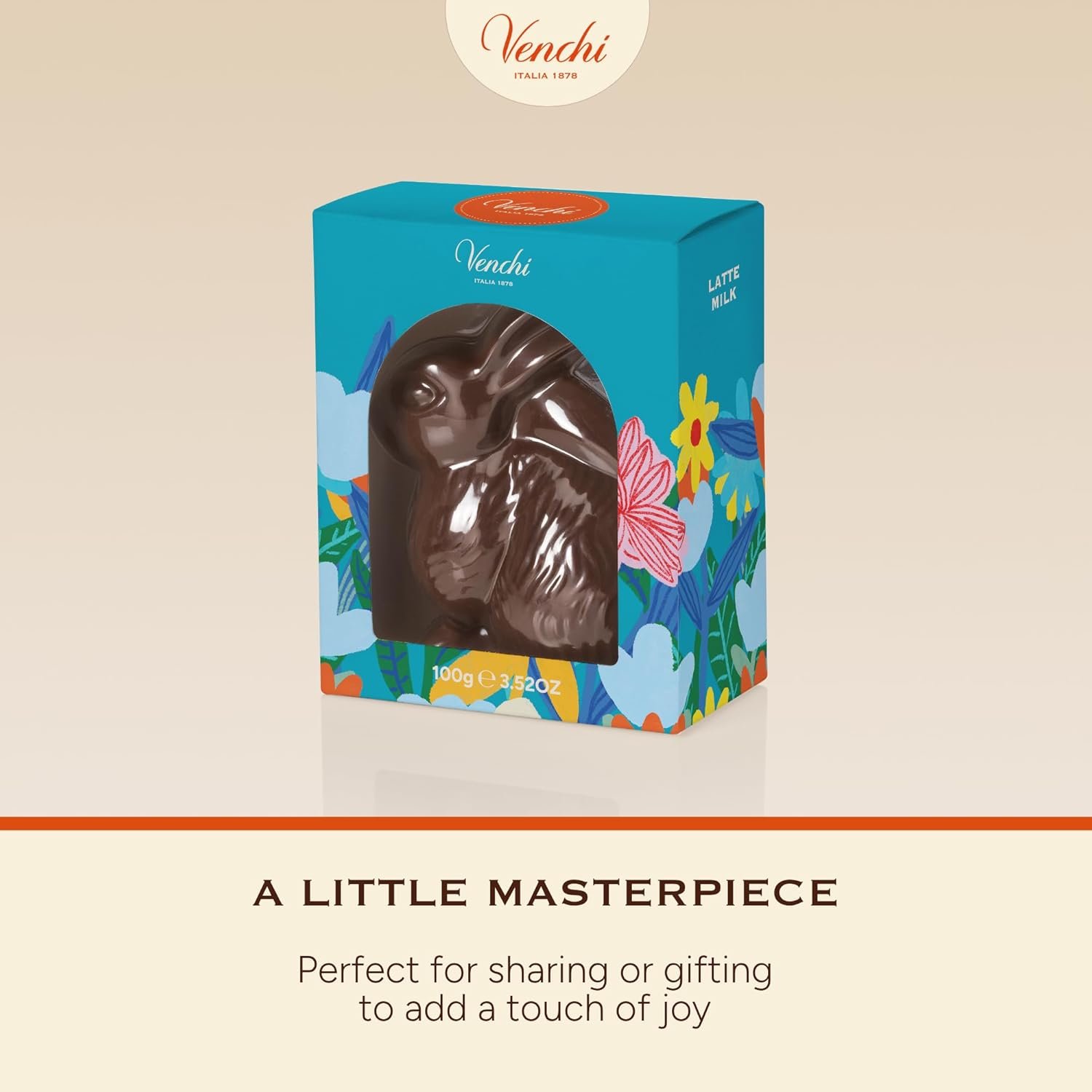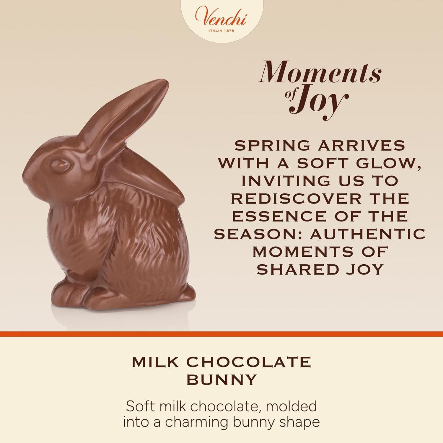 “Venchi Spring Collection: a milk chocolate bunny with finely crafted details; the perfect gift idea to amaze adults and delight children alike; Moments of Joy: spring invites us to rediscover the most delicate gestures and the joy that blooms spontaneously through symbols of care and surprise; our chocolate becomes more than just a sweet treat; it is an authentic moment of sharing; Format: 1 milk chocolate bunny, 3.52 Oz; Flavor: smooth milk chocolate with a creamy recipe; ideal for sharing or gifting; Venchi chocolate is strictly produced in Italy using natural ingredients and less sugar. It is gluten-free, palm oil-free, and contains no artificial colors, preservatives, or artificial components, ensuring the highest quality.”