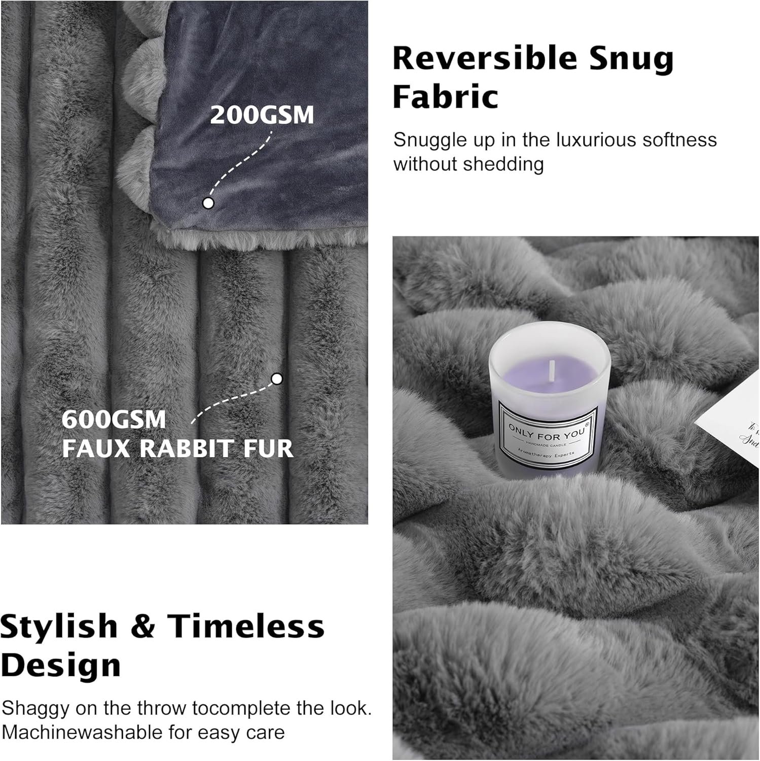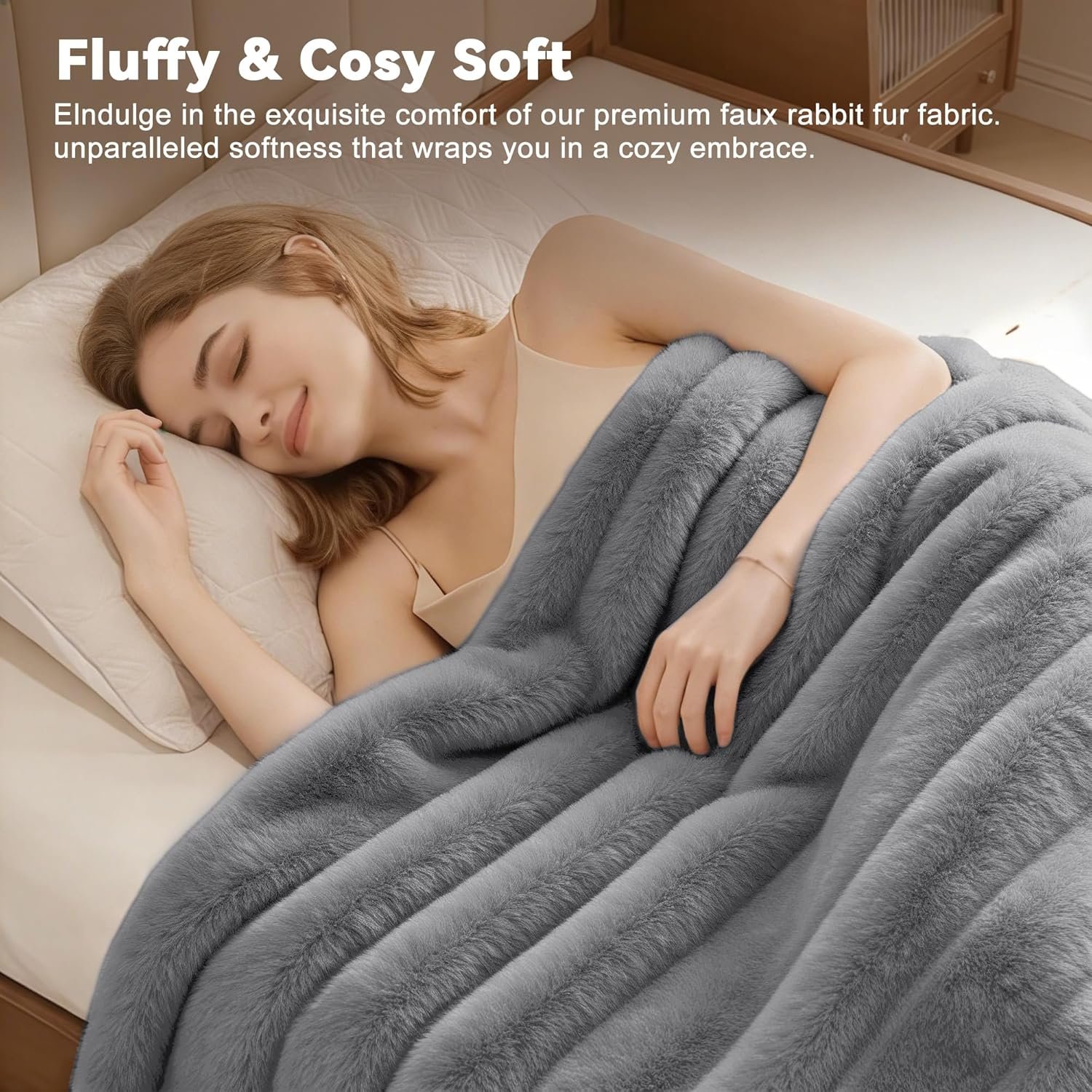 Ultra Soft Comfort: Designed with extra thickness, our 850GSM rabbit fur fabric with crystal velvet lining offers a double-sided experience. This blanket provides superior warmth and an ultra-soft feel, ensuring that you stay cozy during chilly nights. Whether you’re curling up with a book, watching a movie, or taking a restful nap, the plush and comforting texture of this blanket will make you feel enveloped in warmth and softnes