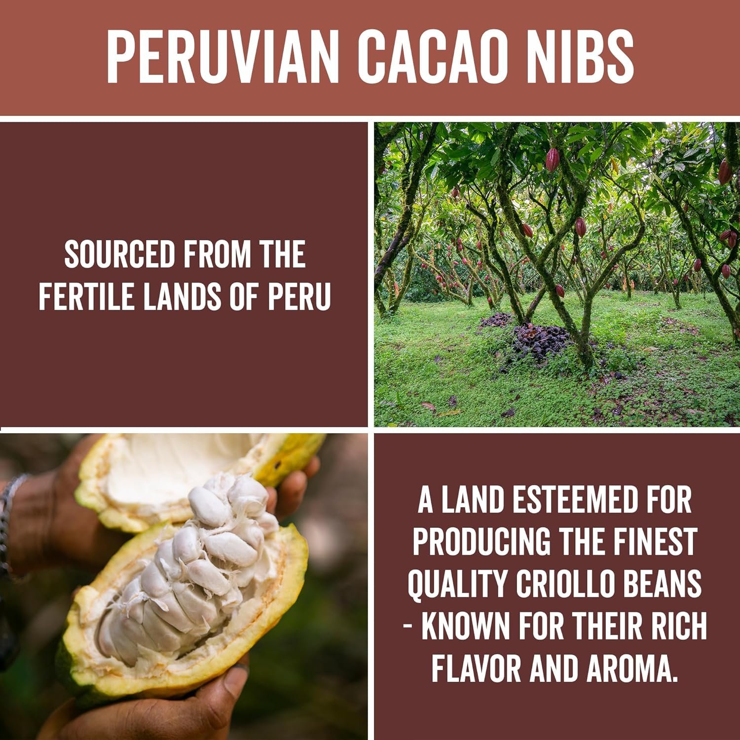 ✔️ PRIZED PERUVIAN BEANS – Made with the finest Peruvian beans, our cacao nibs are grown and harvested in the Amazon rainforest and lightly roasted for peak flavor, offering a rich, deep taste, without the bitterness traditionally found in cacao.