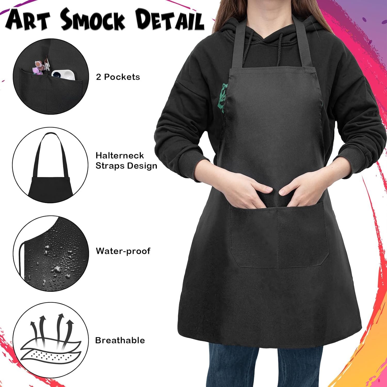 [Different Brushes & Reusable Aprons] 3 distinct brush sizes are available, which help to handle patterns or details over a large area. And the water-proof smocks can keep clothes clean.