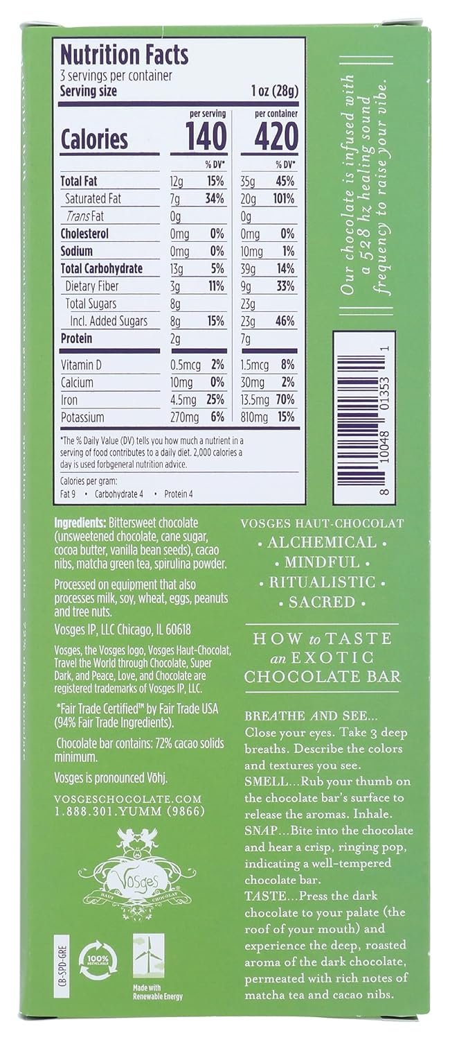 Vosges Haut-Chocolat, Matcha Green Tea & Spirulina Super-Dark Chocolate Bar, 3 oz