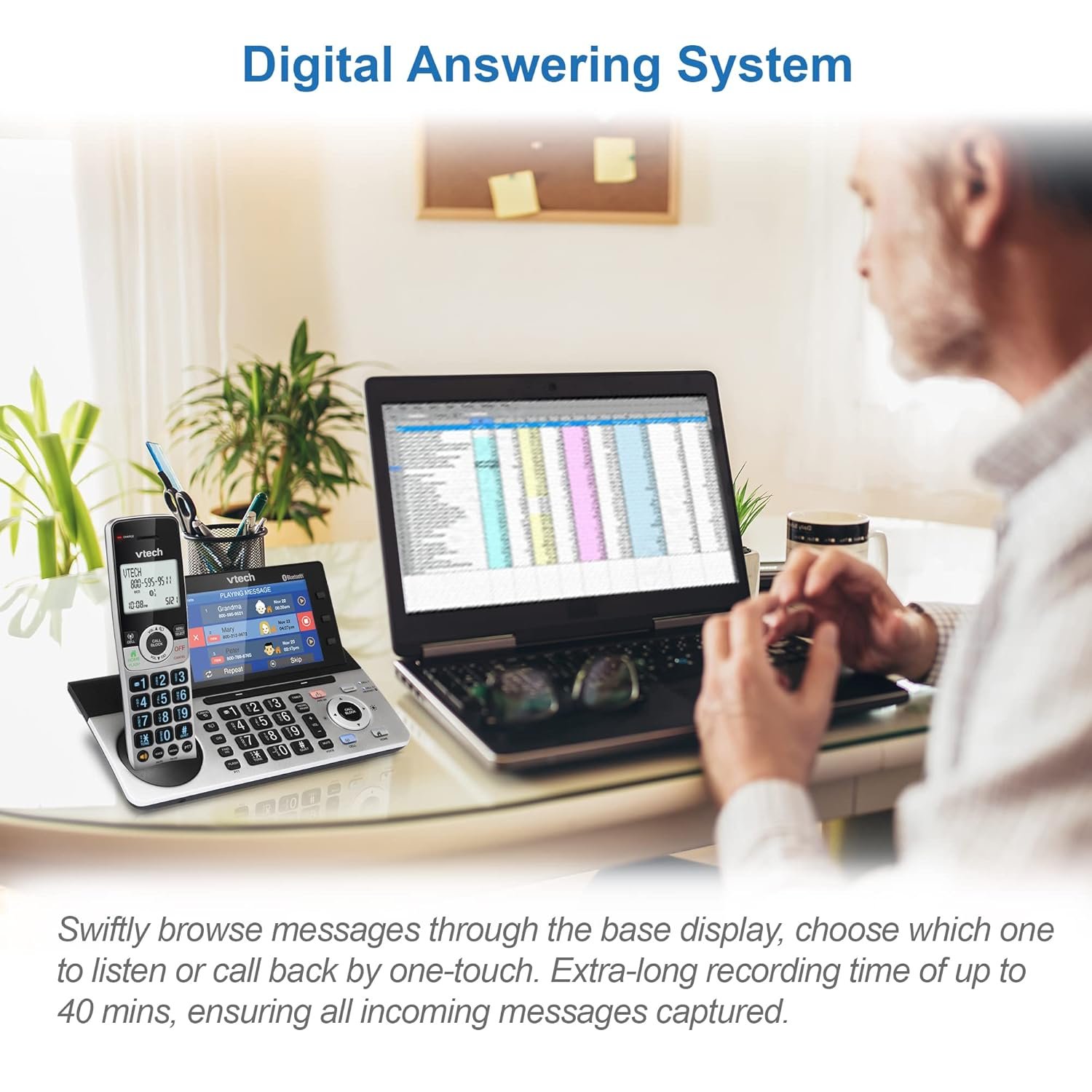 [Enhance efficiency] One-touch access to important contacts; One-touch to call back the caller from listed message or call history; Timer function to help you split your time doing tasks more efficiently.