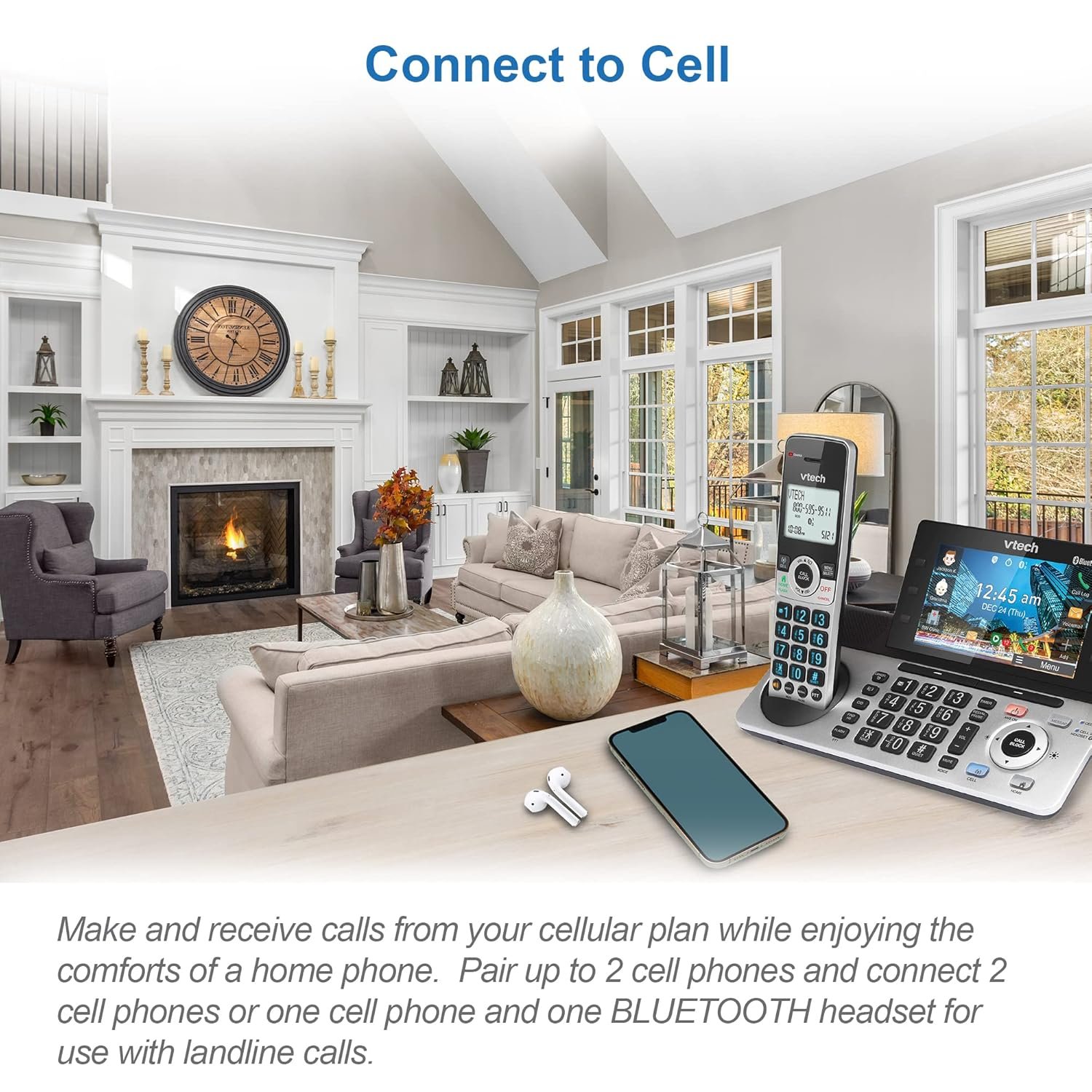 [Never missed a call] An Virtual 2-line system manages calls from landline and cell-line simultaneously. Pair up to 2 cell phones or one cell phone and one Bluetooth headset for use with landline calls.
