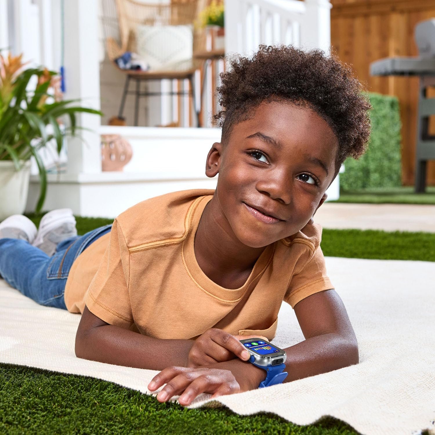 Strike a pose! This smartwatch features two cameras, a high-resolution screen, a splash-proof metal body and a fashionable watchband that makes this full-function smartwatch the coolest tech around. Get creative with the dual cameras to personalize your clock face, photos and videos with the effects and filters. Find AR monsters in the real world, compose music using instruments and sound effects, and play exciting movement games to see your step count soar. Practice telling time with over 50 clock faces or shake the watch to hear the time out loud. Download additional games and more from the Learning Lodge. Set to English, Spanish or French. Intended for ages 4+ years. Includes built-in, rechargeable lithium-ion battery and micro-USB cable. Do not charge using a third-party adapter.