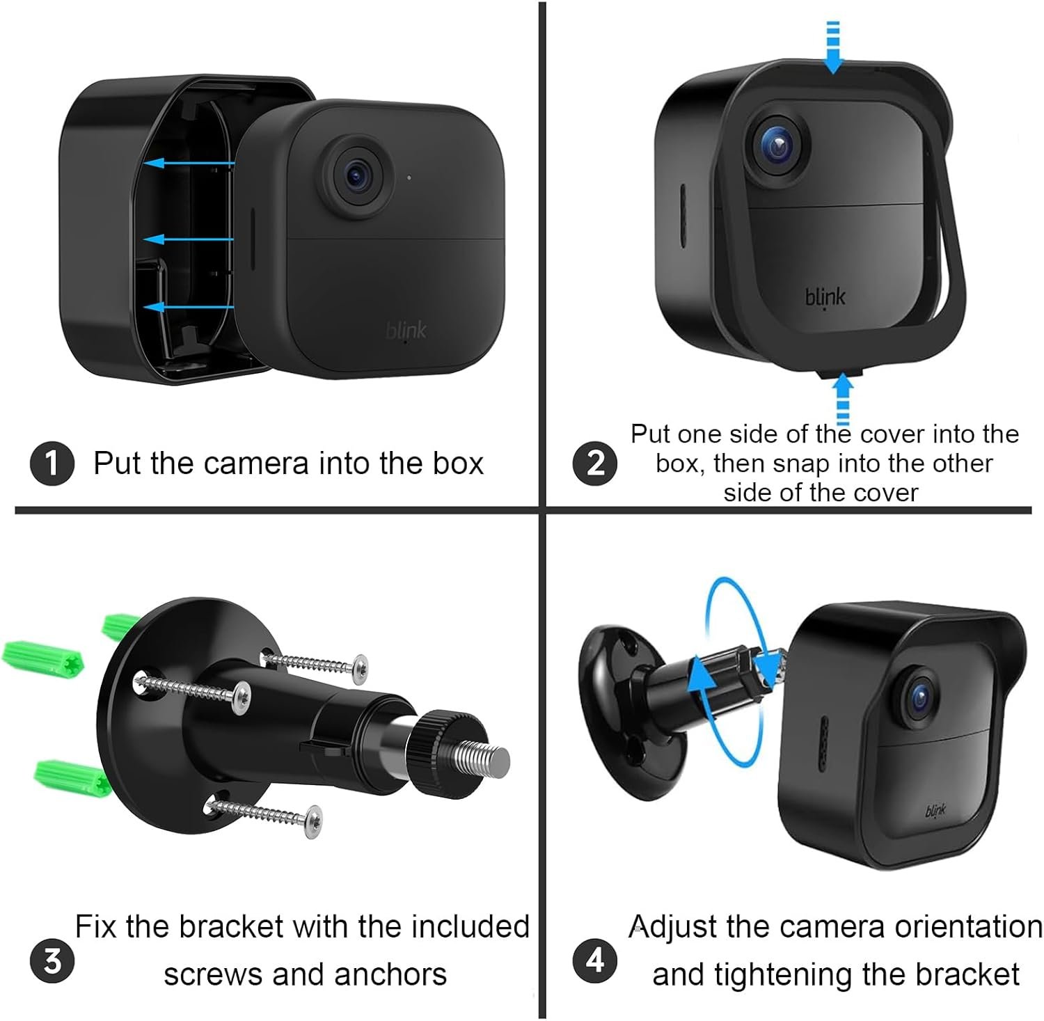 [Package Contains] Plastic Weather Proof Covers x 3 pack, Blink Outdoor (4th & 3rd Gen & 2K+ new model) Camera Mounts x 3 pack, Screws accessories x 3 set.(NOT Include Blink Camera)