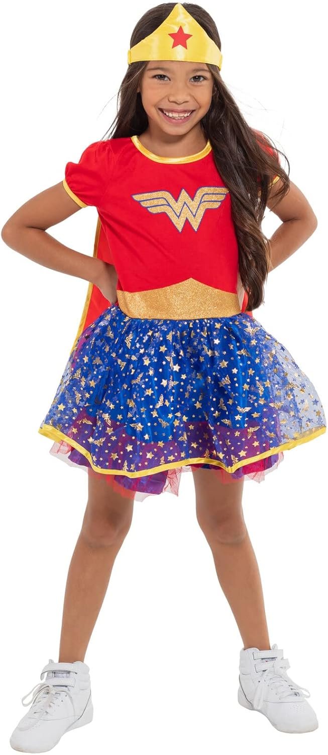 Customers find this Wonder Woman costume to be well-made and comfortable, noting it’s not itchy at all. The outfit fits true to size and looks exactly like the picture, with one customer highlighting the amazing sparkle in the skirt. They appreciate the material quality, with one mentioning it’s thick, and find it washes well and offers good value for money.