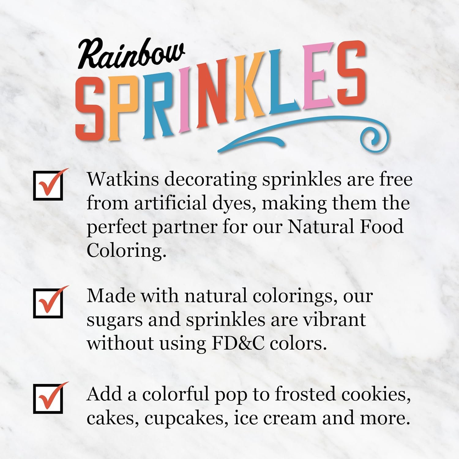 Add a splash of color to cupcakes, cookies, cakes and more! Favorite of both adults and kids