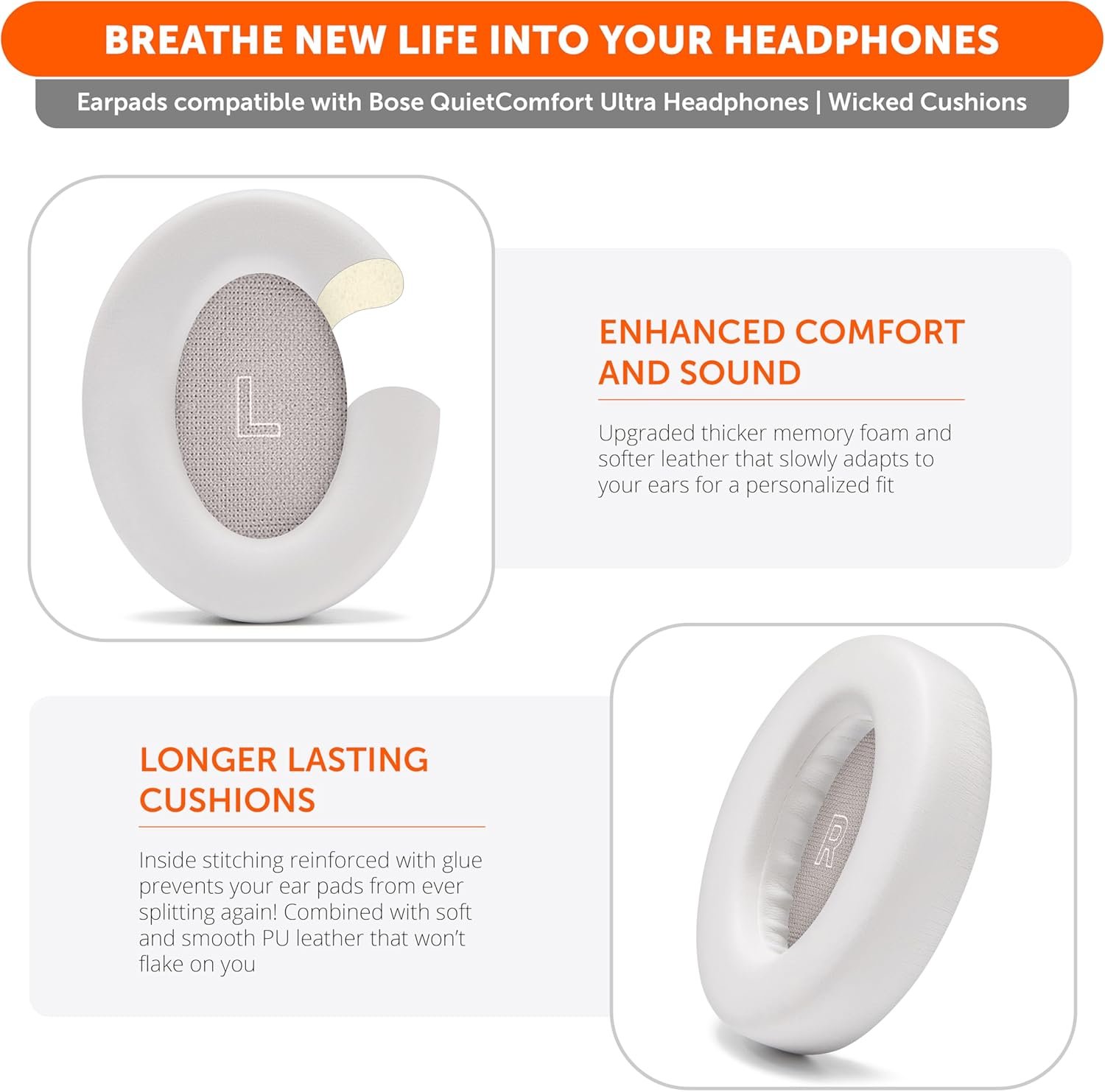 Exceptional Durability: Built with reinforced stitching and premium PU leather, these earpads are designed to withstand daily use without peeling or splitting.