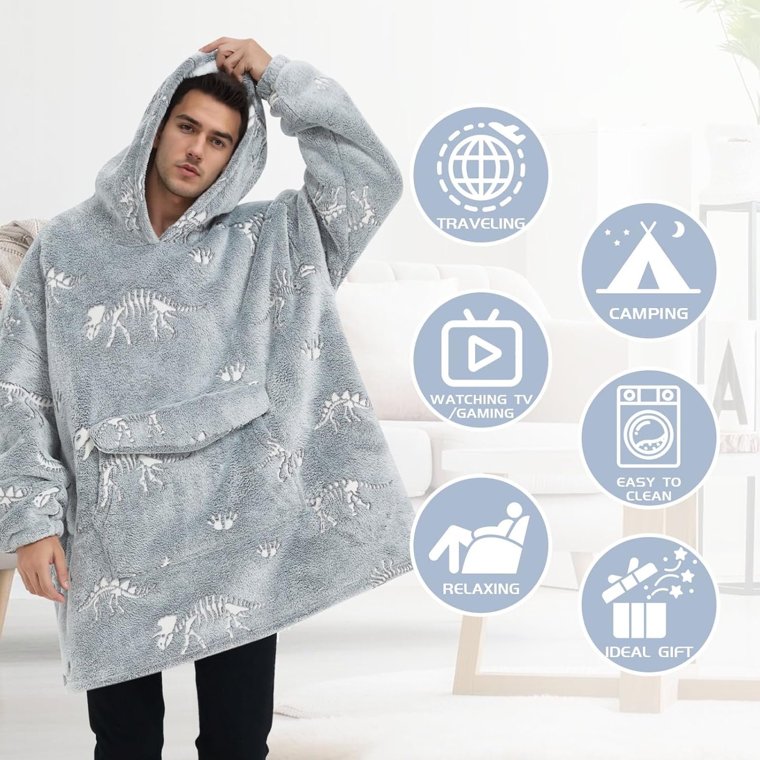Super Warm Wearable Blanket Hoodie for Adult:This wearable blanket hoodie is very comfortable, stay warm and comfortable while learning at home, watching TV, lounging on sofa, playing game, reading book, and is also convenient for going playground, hiking, outing, kicking the ball, watching a sporting event, climbing mountains, picnics, even going school, while also being durable in all conditions