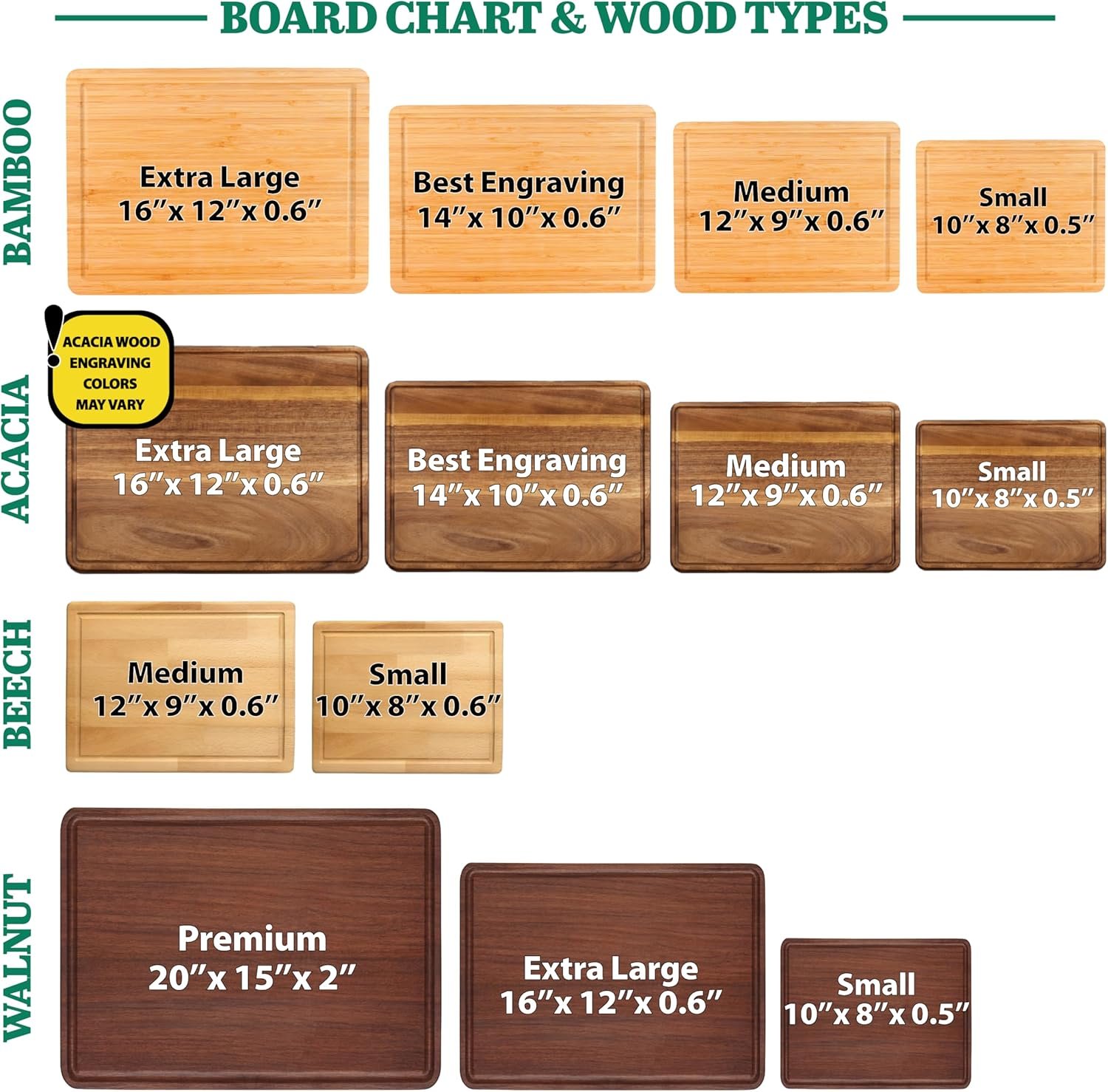[Premium Materials]: Crafted from high-quality walnut, bamboo, acacia or beech for exceptional durability and aesthetic appeal and coated with food-safe oil. Knife-friendly surface that won’t dull or damage your knives.