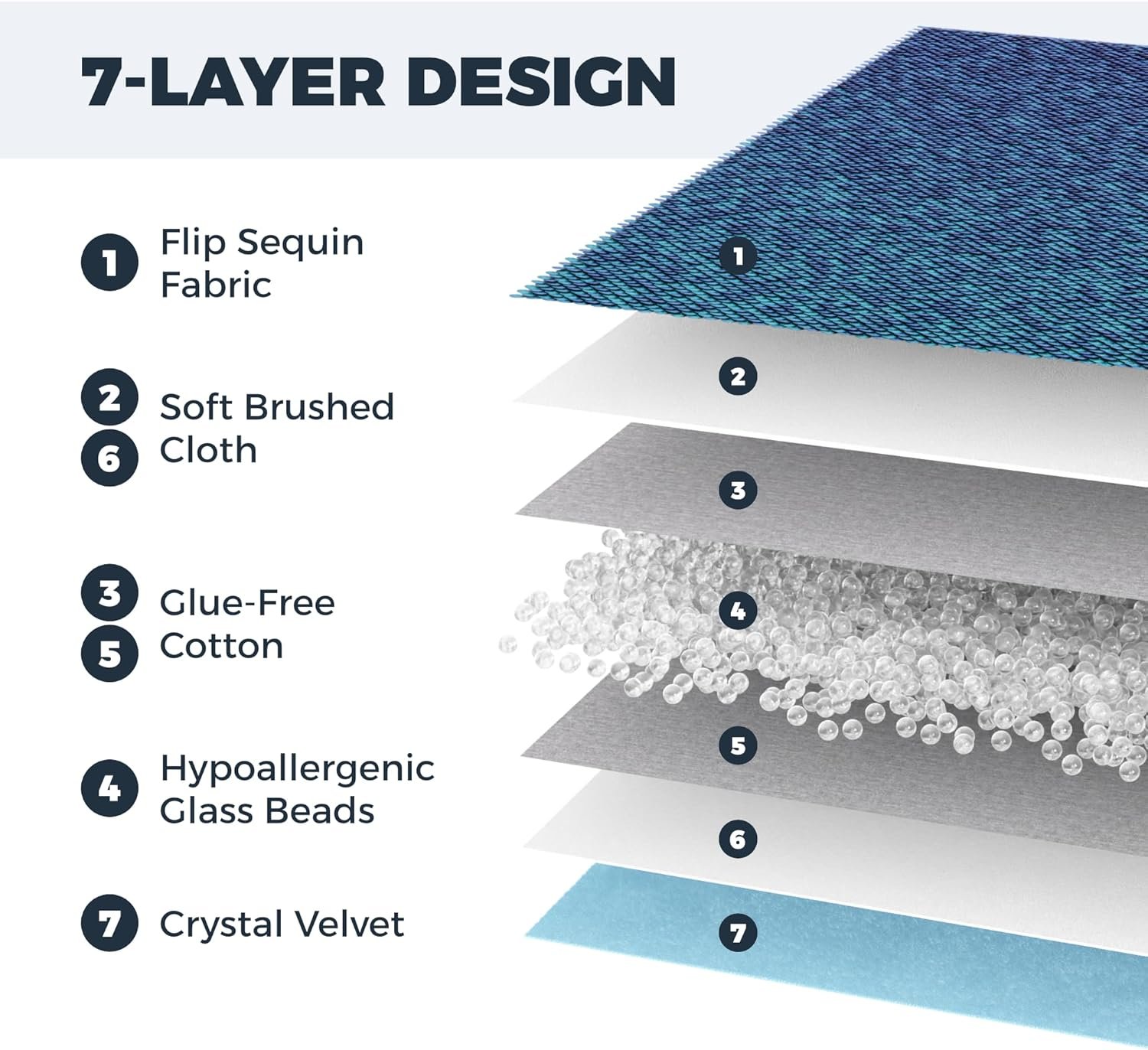 π“πŽπ-ππ”π€π‹πˆπ“π˜ πŒπ€π“π„π‘πˆπ€π‹π’ π…πŽπ‘ πŒπ€π—πˆπŒπ”πŒ π‚πŽπŒπ…πŽπ‘π“ – The 7-Layer design ensures a top-quality product that feels luxurious while being functional. Glass beads offer even weight distribution, while soft velvet crystal and glue-free cotton provide a plush and breathable experience, ensuring comfort for extended use.
