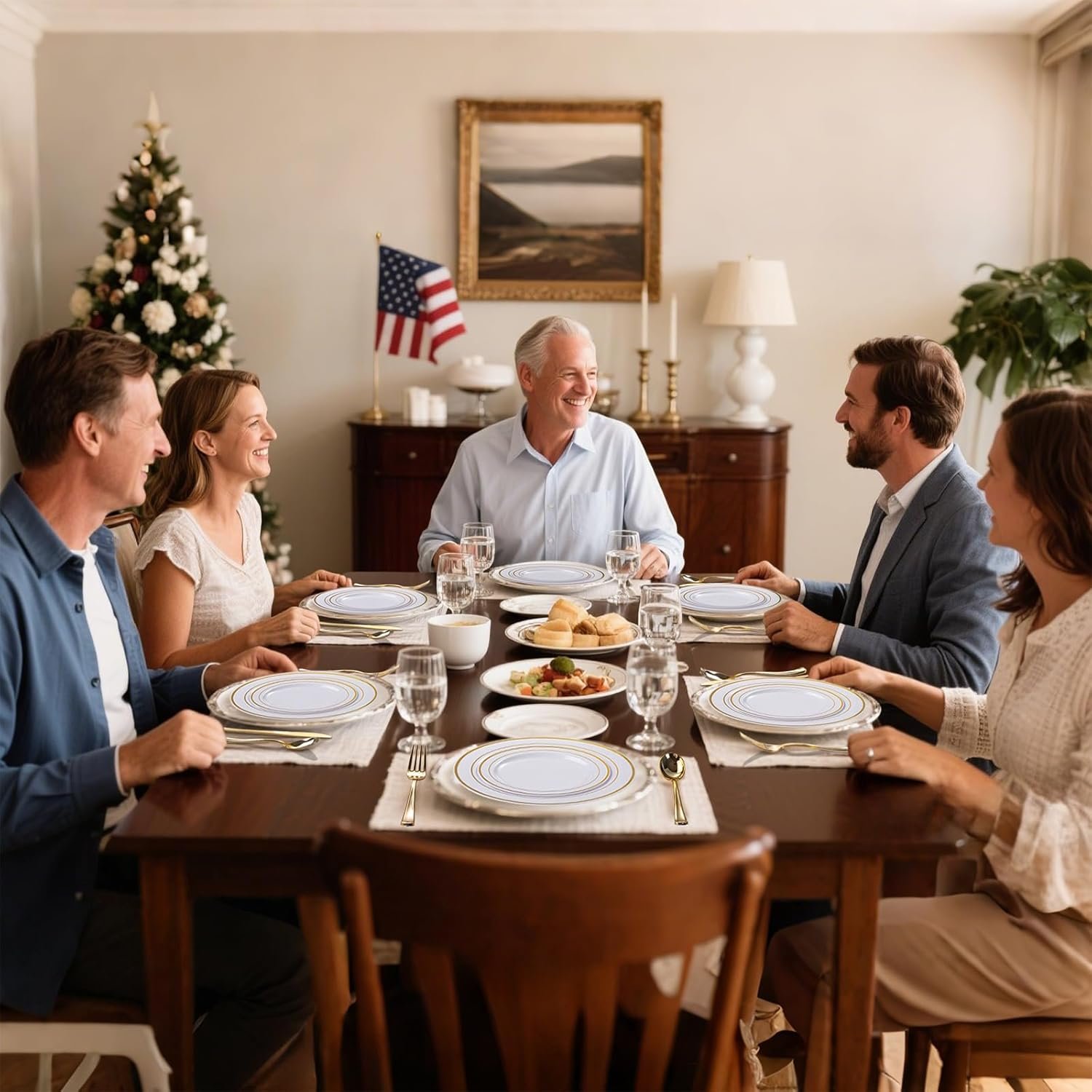 BPA FREE: Gold plastic dinnerware is made of healthy hard plastic that we can guarantee 100% BPA free and non-toxic. What’s more, these gold disposable plates can stand up entirely to dinner with hot food and gravy
