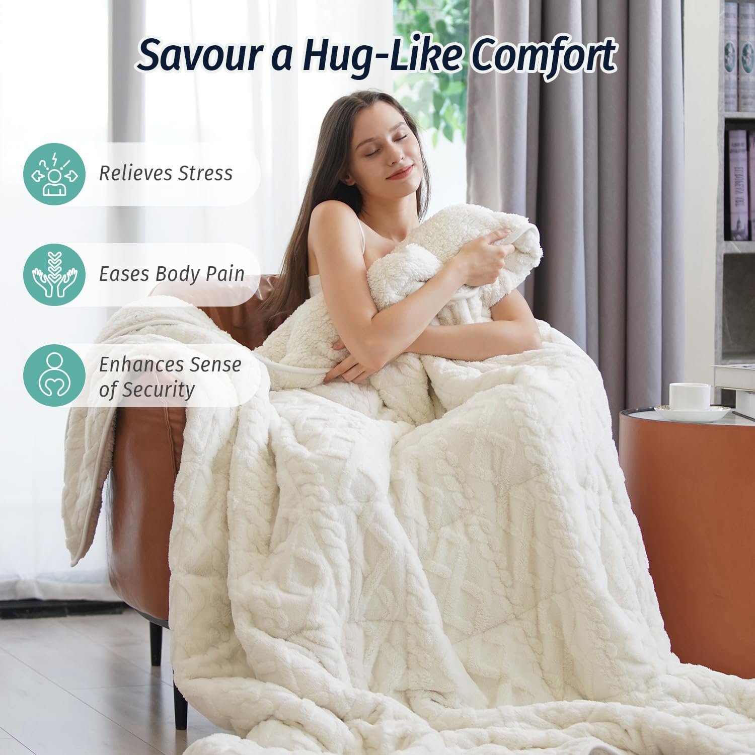 Embrace a Blissful Sleep: Like a gentle hug, the Sherpa weighted blanket cocoons you in a cloud of softness, creating a sense of security that lulls you into a deep and peaceful slumber. Its optimal weight pressure helps alleviate stress and soothe tension, ensuring you wake up refreshed and revitalized