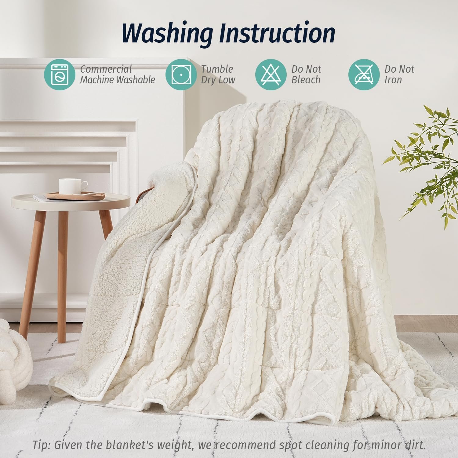 Soft Jacquard Weighted Blanket: Featuring double-sided fluffy Sherpa fabric and classic jacquard pattern, the weighted blanket 15 lbs wraps you in a warm and cozy embrace while adding a touch of elegance for your home decor