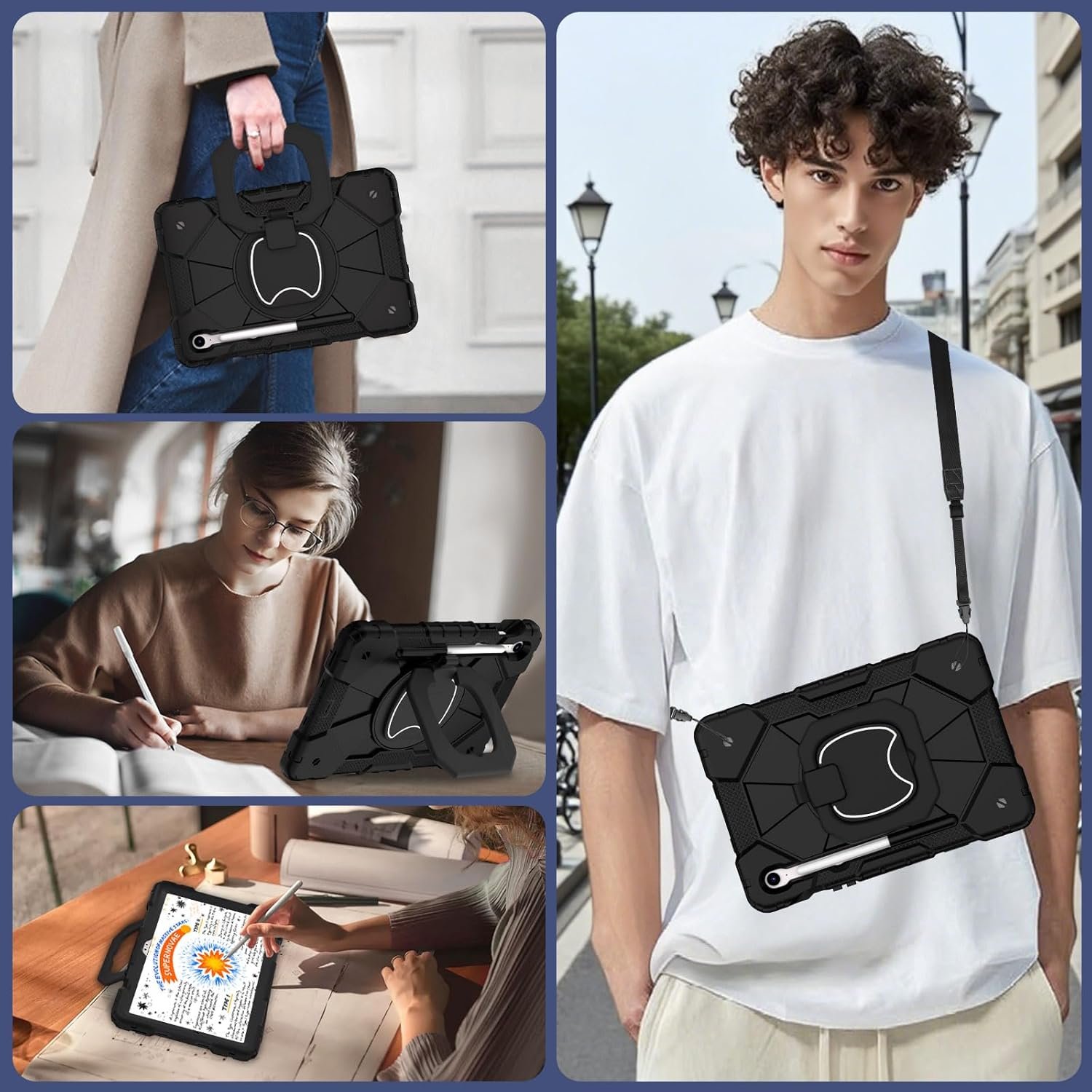 Pencil Holder & Adjustable Shoulder Strap:Samsung tab s9 fe case with pencil holder.Also offers adjustable shoulder strap,allow you use or carry much easier,perfect for a variety of people and occasions.