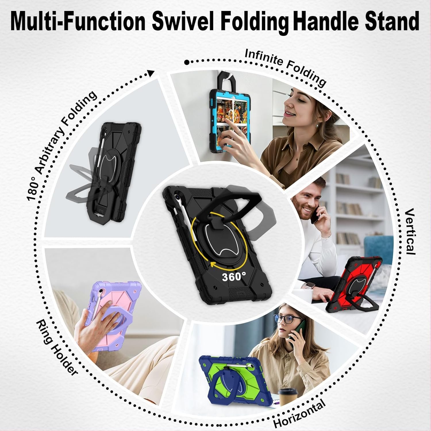 Center: Non-slip hard shell with 360° rotating built-in kickstand.
