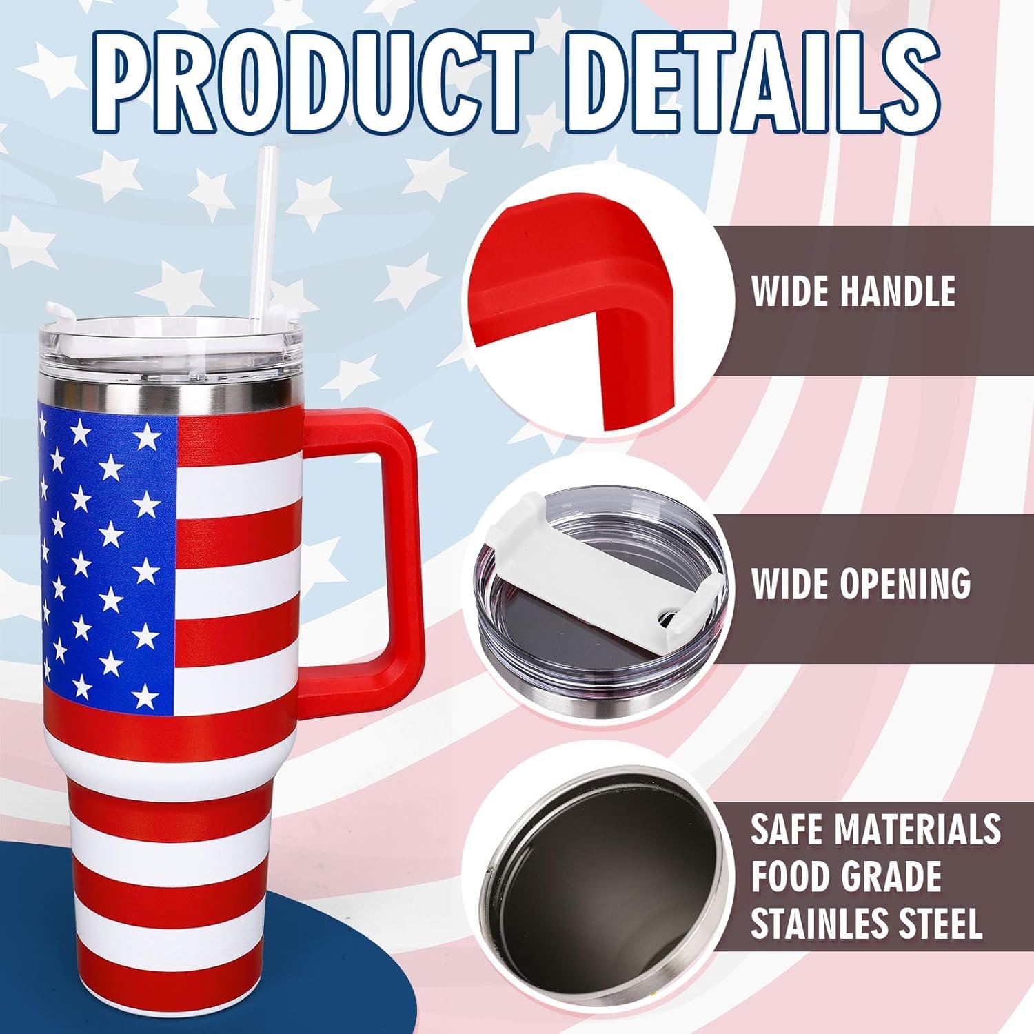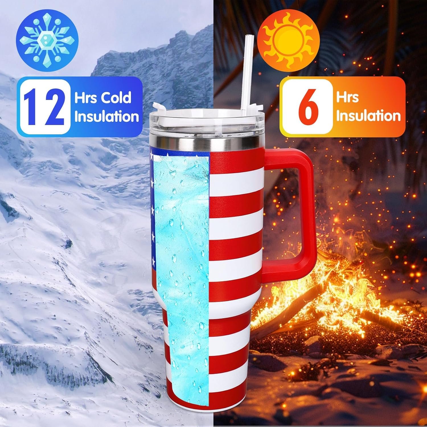 Good Quality: Made of reliable stainless steel, sturdy and rustproof, our tumbler keeps your drinks hot or cold for hours, while the handle design, spill-proof lid and reusable straw for easy drinking on the go