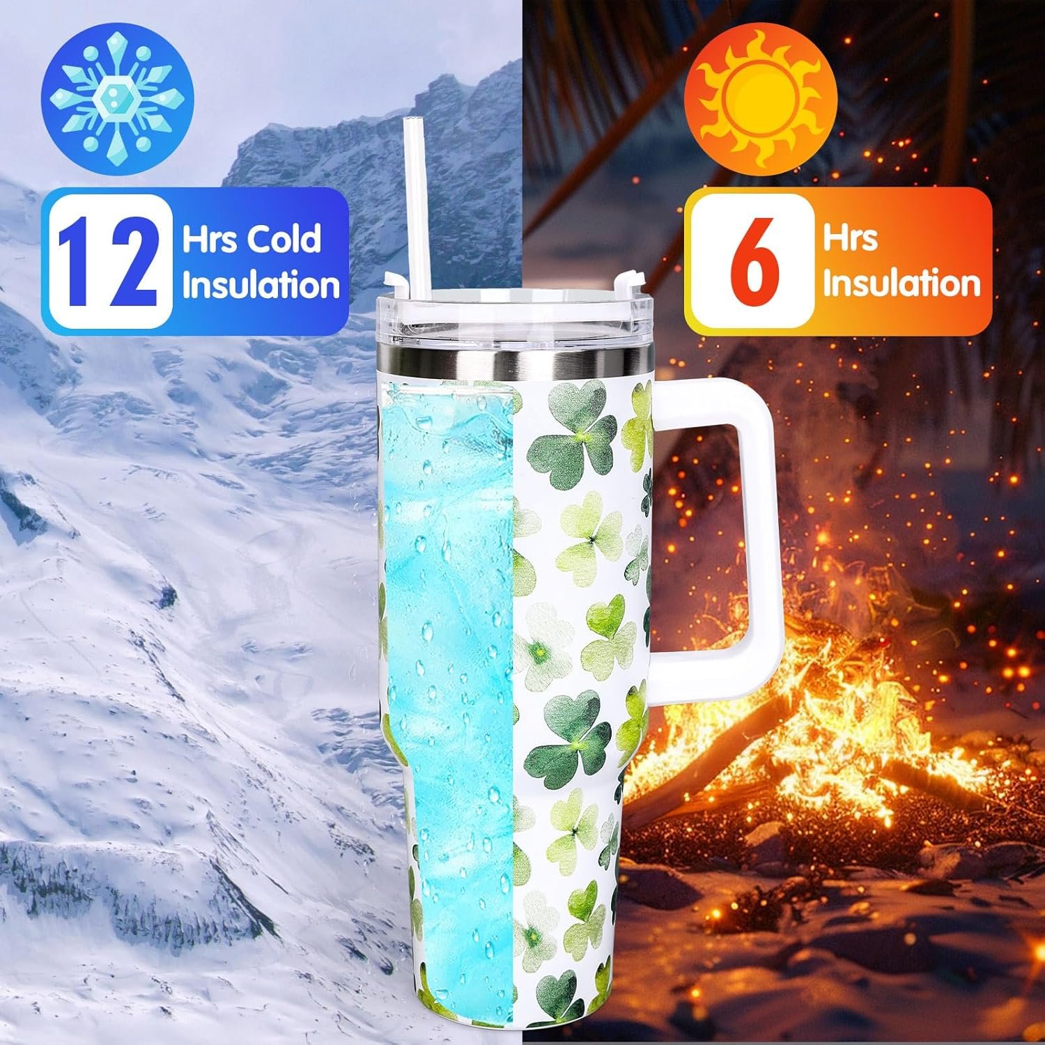 Good Quality: Made of reliable stainless steel, sturdy and rustproof, our tumbler keeps your drinks hot or cold for hours, while the handle design, spill-proof lid and reusable straw for easy drinking on the go