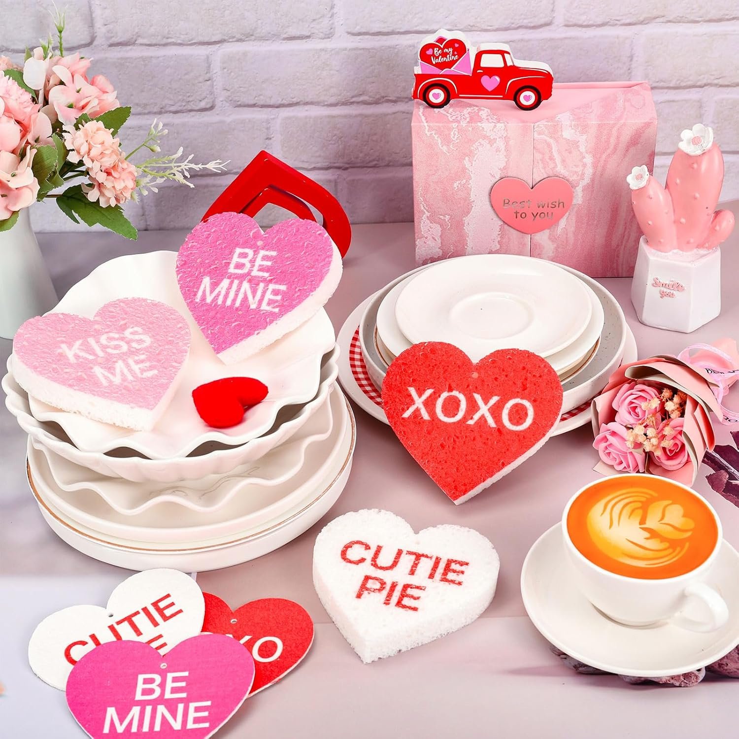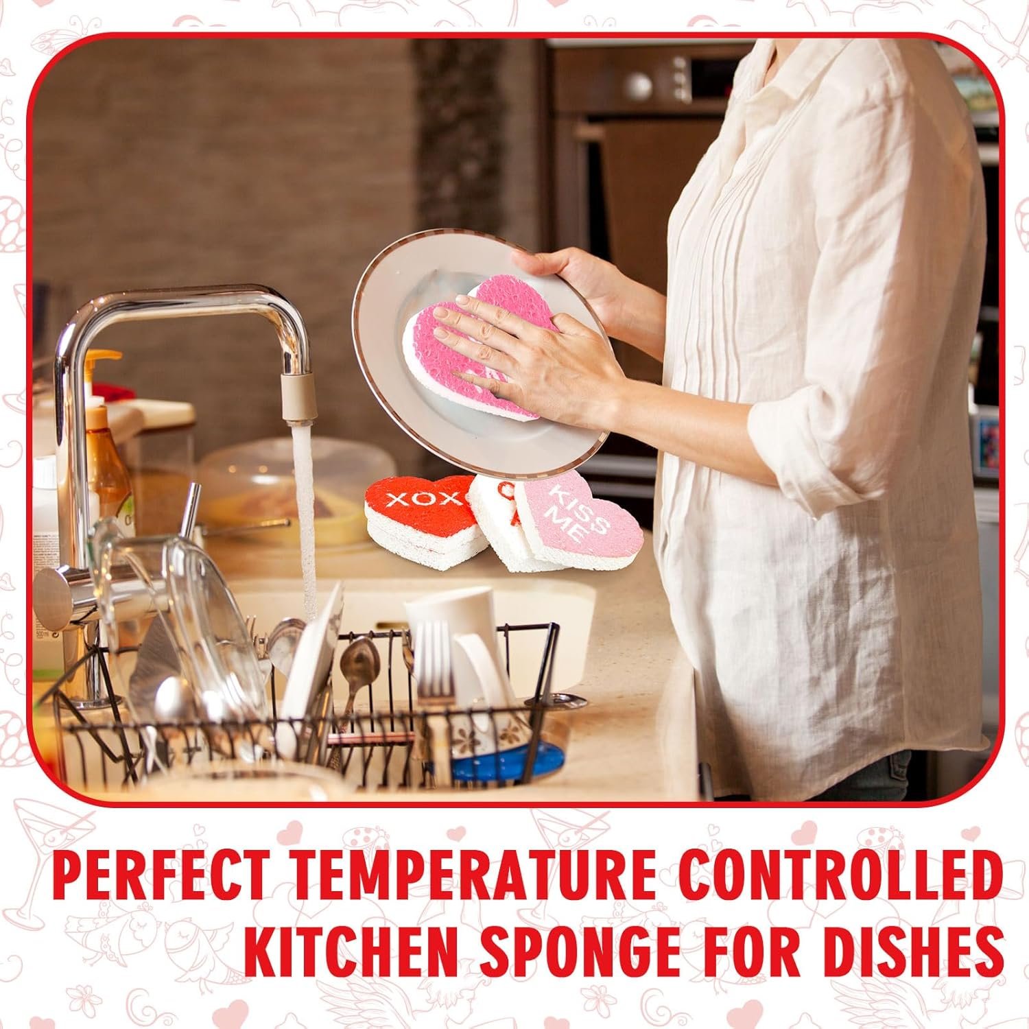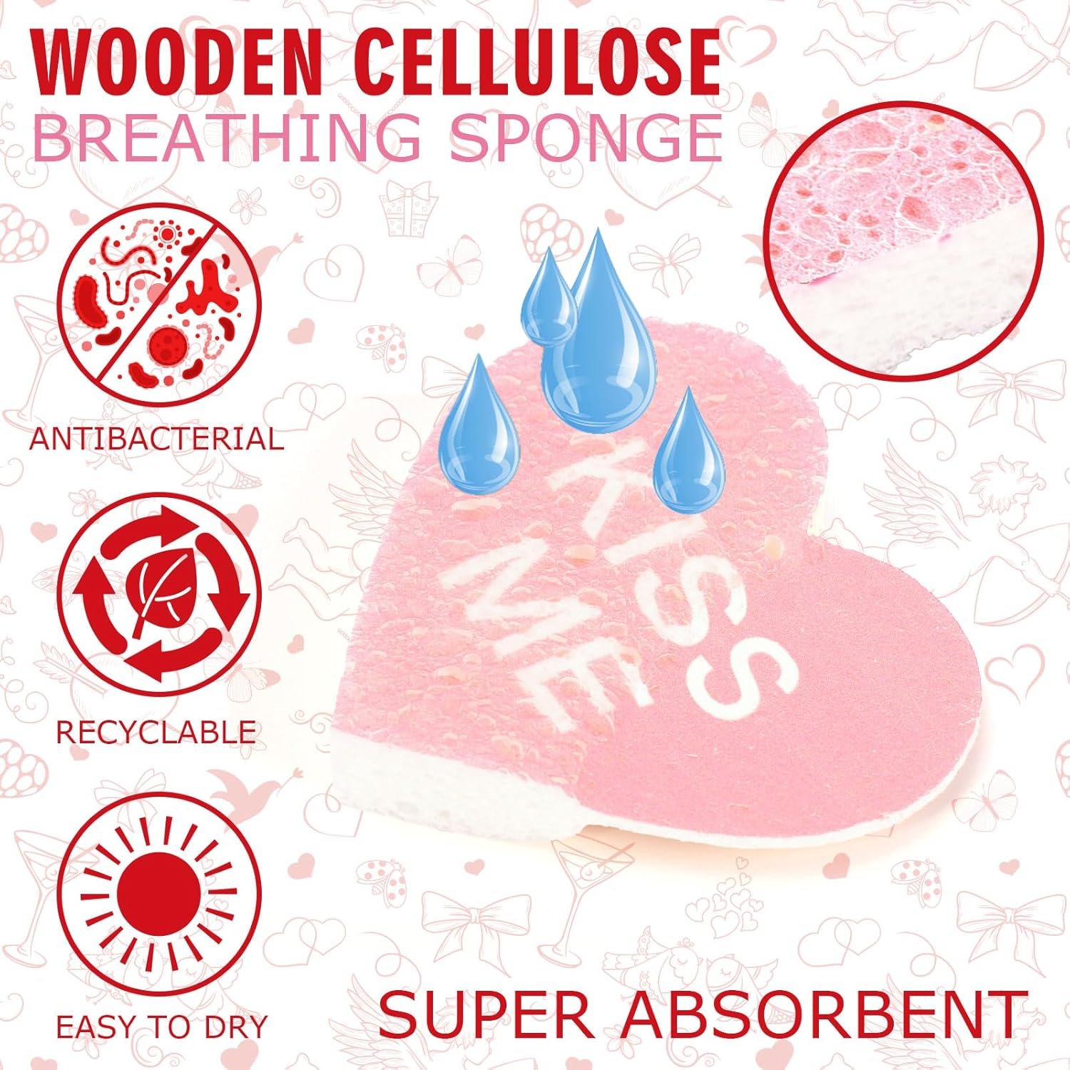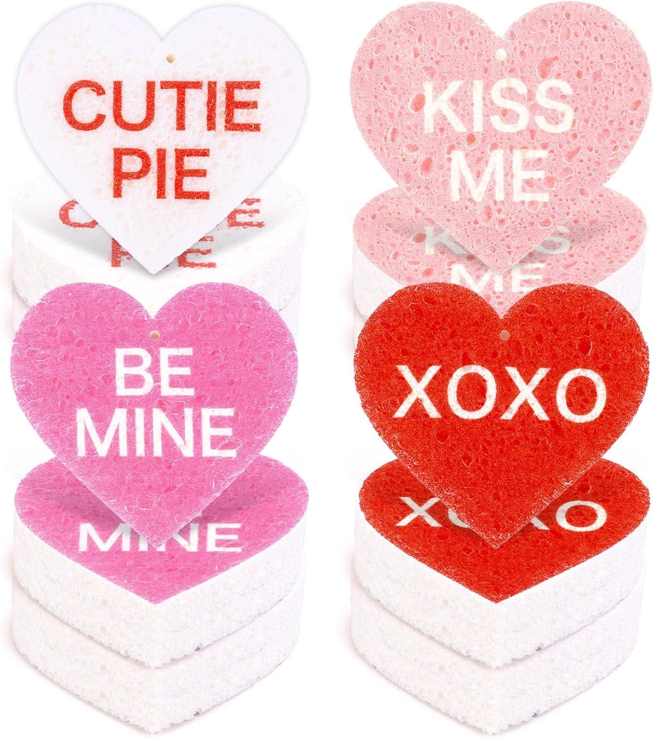 Our kitchen sponges are in sweet Valentine conversation heart design, delicate and eye-catching, made of quality wood pulp cotton, soft, super absorbent and easy to foam, making your kitchen cleaning easier.