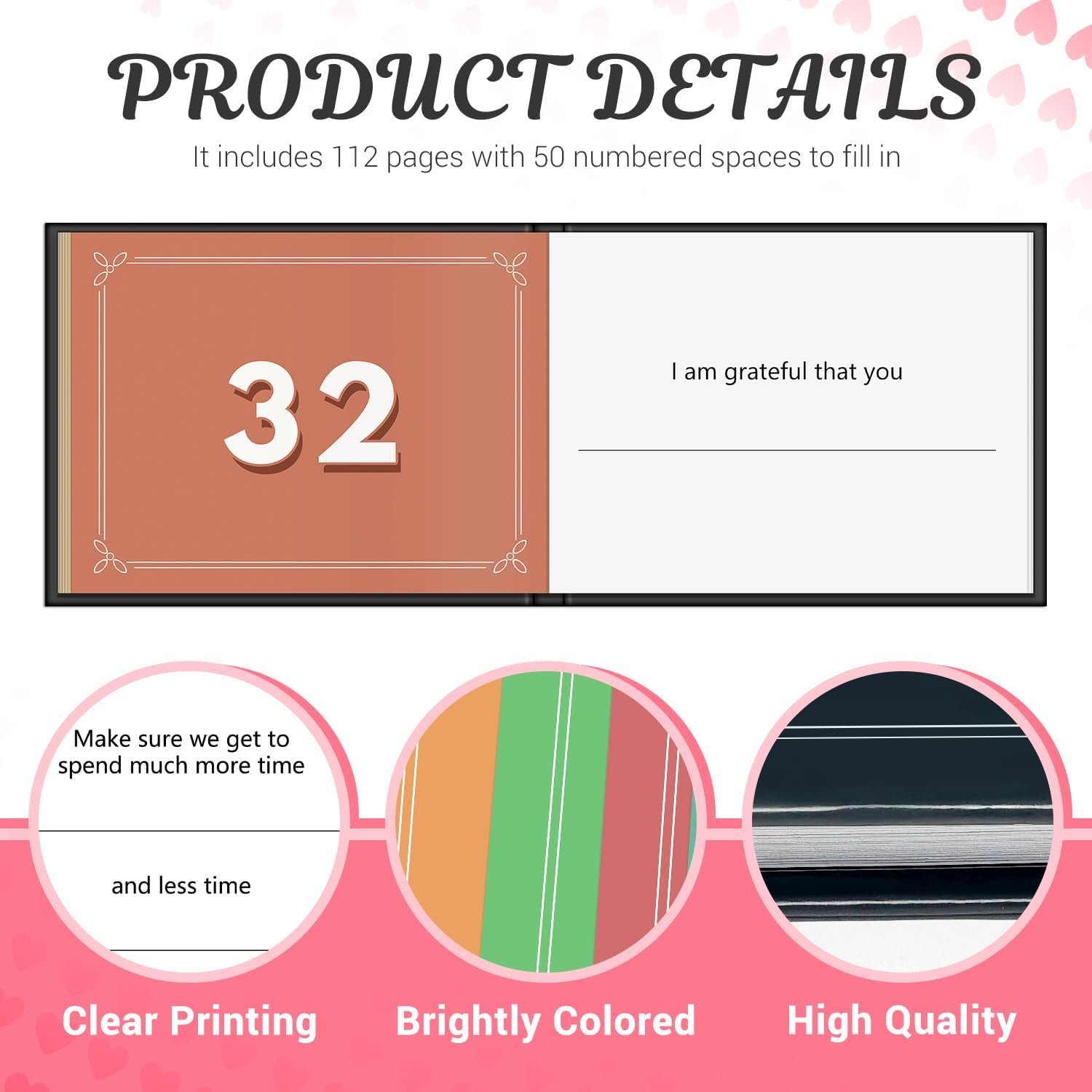 【Beautifully Designed Love Journal Notebook】Encased in a hardcover, this 5 x 6.5 inch couples gift book is built to last. With 112 pages and 50 guided prompts, it offers ample space to pour your heart out while remaining a concise and elegant package. The high-quality construction ensures the memories you document inside are preserved as a beautiful physical artifact, ready to be revisited time and again as a testament to your love and appreciation.