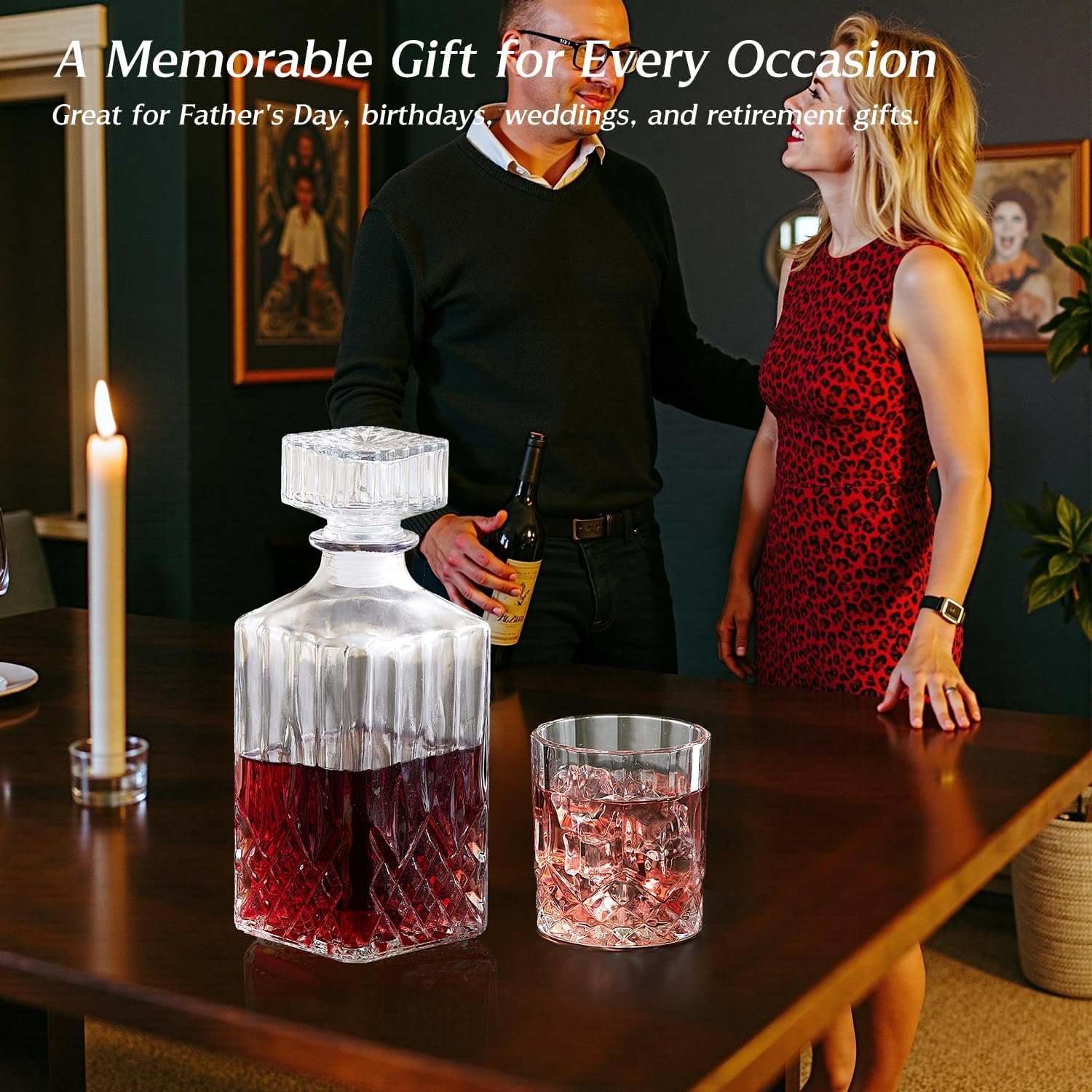 Versatile Use for All Occasions – Ideal for formal gatherings, casual evenings, or as a stylish centerpiece, this whiskey decanter set for men adds sophistication to any setting.