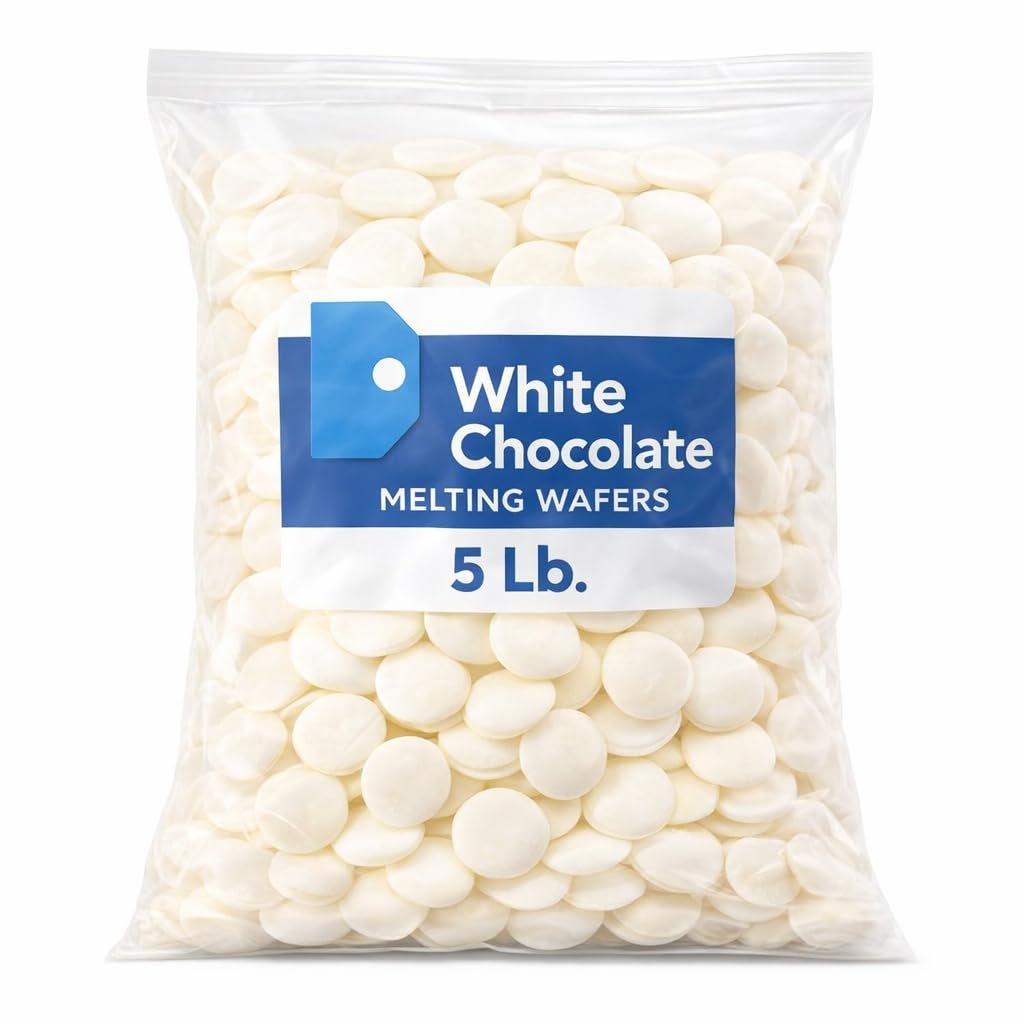 5 lb Bulk Bag of White Chocolate Wafers: Large, value-sized bag ideal for baking, candy making, dipping, and large batch dessert preparation. Smooth & Easy Melting: Formulated to melt evenly and smoothly, perfect for coating, molding, drizzling, and decorating desserts. Creamy, Sweet White Chocolate Flavor: Rich, smooth taste that adds sweetness and visual appeal to baked goods and confections. Versatile Baking & Decorating Ingredient: Ideal for cakes, cookies, brownies, cake pops, candy molds, and chocolate-covered treats. Great for Home & Professional Use: Suitable for home bakers, candy makers, bakeries, catering, parties, and holiday dessert prep.