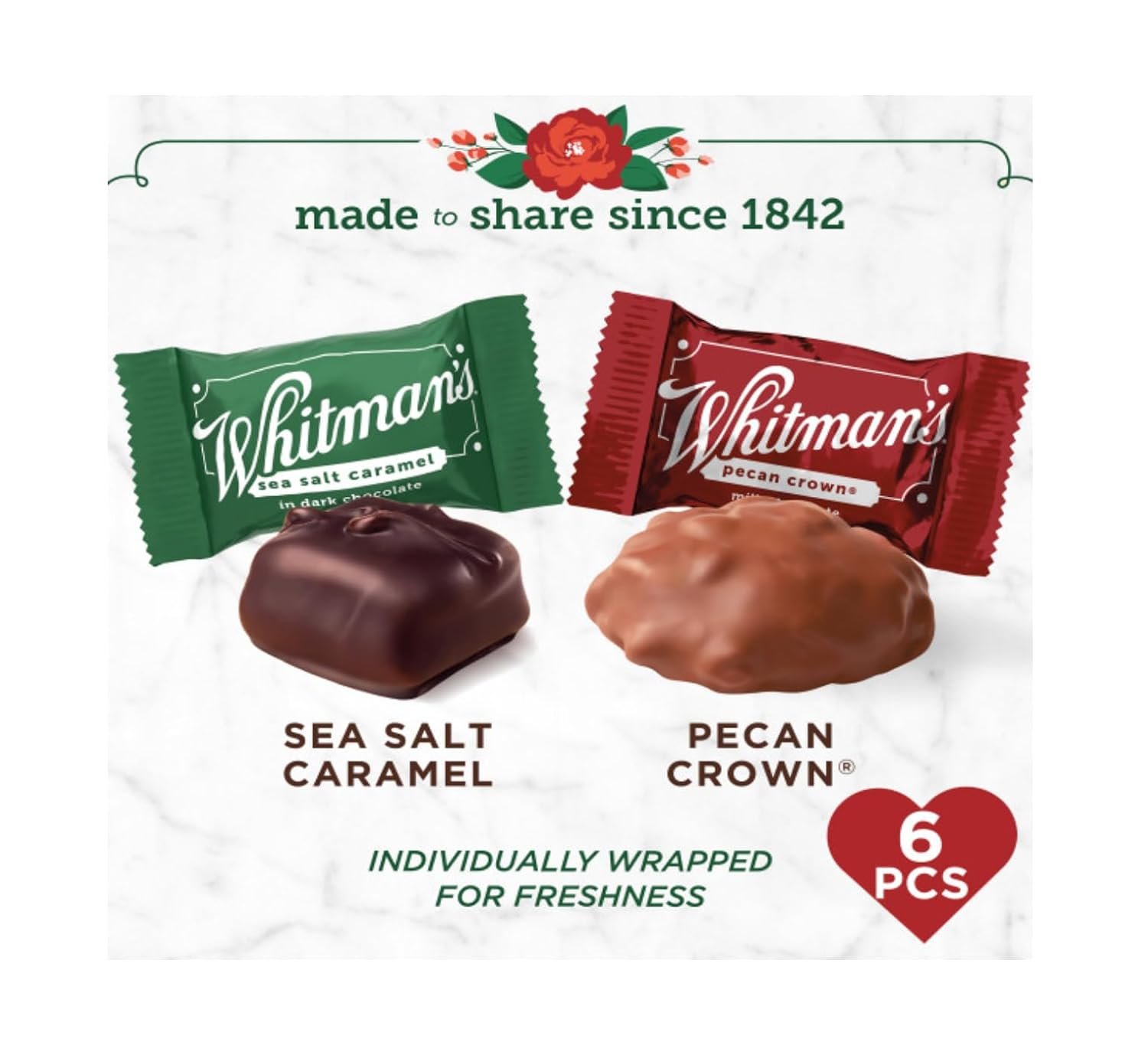 Whitman’s Valentine’s Day Heart Box – Assorted Chocolates (6 Pieces) Make this Valentine’s Day unforgettable with a gift that speaks the language of love—and exceptional taste. The Whitman’s Valentine’s Day Heart Box offers a sophisticated twist on the classic candy sampler, perfectly sized for a thoughtful gesture or a sweet shared moment. Inside this charming heart-shaped box, you will find six decadent pieces curated to satisfy diverse cravings. Indulge in the rich, buttery crunch of Milk Chocolate Pecan, where smooth milk chocolate meets the satisfying texture of premium nuts. For those who prefer a savory edge, the Dark Chocolate Sea Salt Caramel delivers a bold contrast, balancing deep cocoa notes with a ribbon of salted caramel that melts on the tongue. This sampler isn’t just candy; it’s an invitation to pause and savor the holiday. Whether you are surprising a partner, treating a friend, or letting a family member know they are cherished, this assortment strikes the right chord. The elegant packaging eliminates the need for wrapping paper, making it an effortless yet impactful present. Start a new tradition this year. Move beyond the ordinary and give a gift that reflects quality and care. With Whitman’s, you are sharing more than just chocolate; you are creating a memory that lingers long after the last bite. Key Features: Classic Assortment: Includes Milk Chocolate Pecan and Dark Chocolate Sea Salt Caramel. Perfectly Portioned: Contains 6 high-quality chocolate pieces. Gift-Ready: Beautifully designed heart-shaped box perfect for Valentine’s Day. Taste Profile: A delightful mix of sweet, salty, crunchy, and smooth textures.