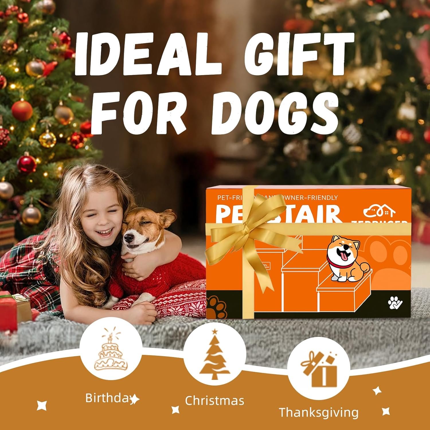 A TOUCH OF LOVE FOR YOUR HOME: Zerbuger stairs are designed for pets and kids 3+. For your pets, our sturdy dog stairs provide a stable, secure way for dogs up to 200 LBS to climb onto furniture or beds. For your little ones, our stairs provide a safe and easy way to climb onto the bed. No more struggling or asking for help. It’s a great way to encourage their independence while ensuring their safety. Our stairs add a touch of warmth and functionality to your home, creating a cozy and happy environment for the whole family.