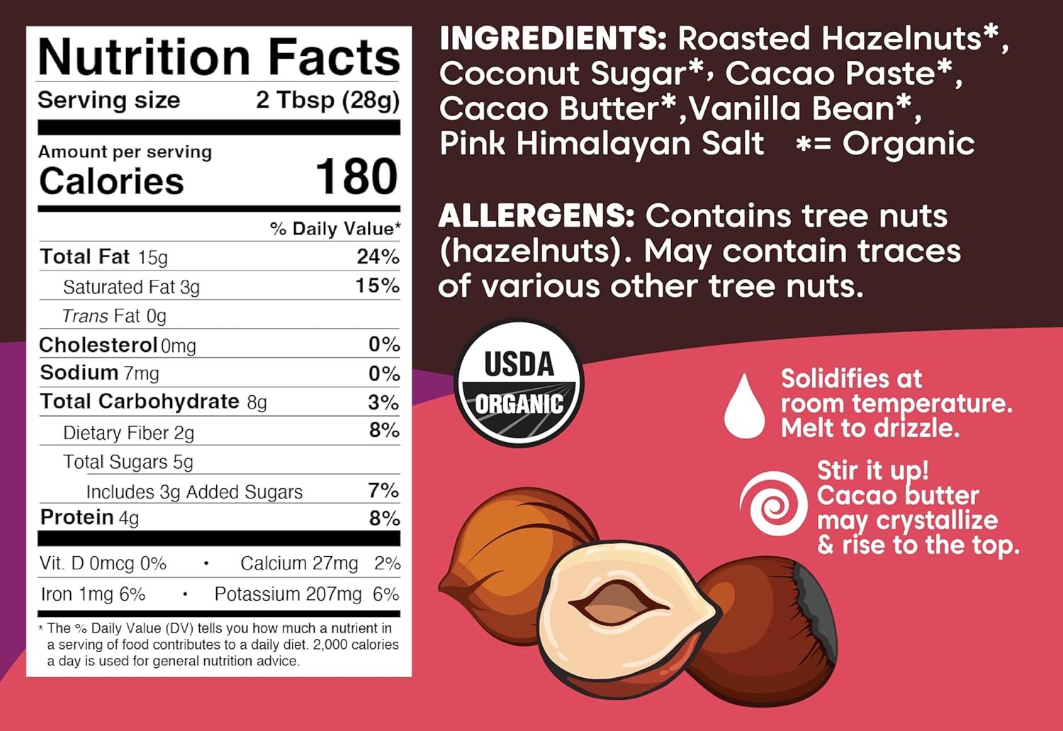 Enjoy the clean, simple ingredients in our decadent Chocolate Hazelnut Butter.