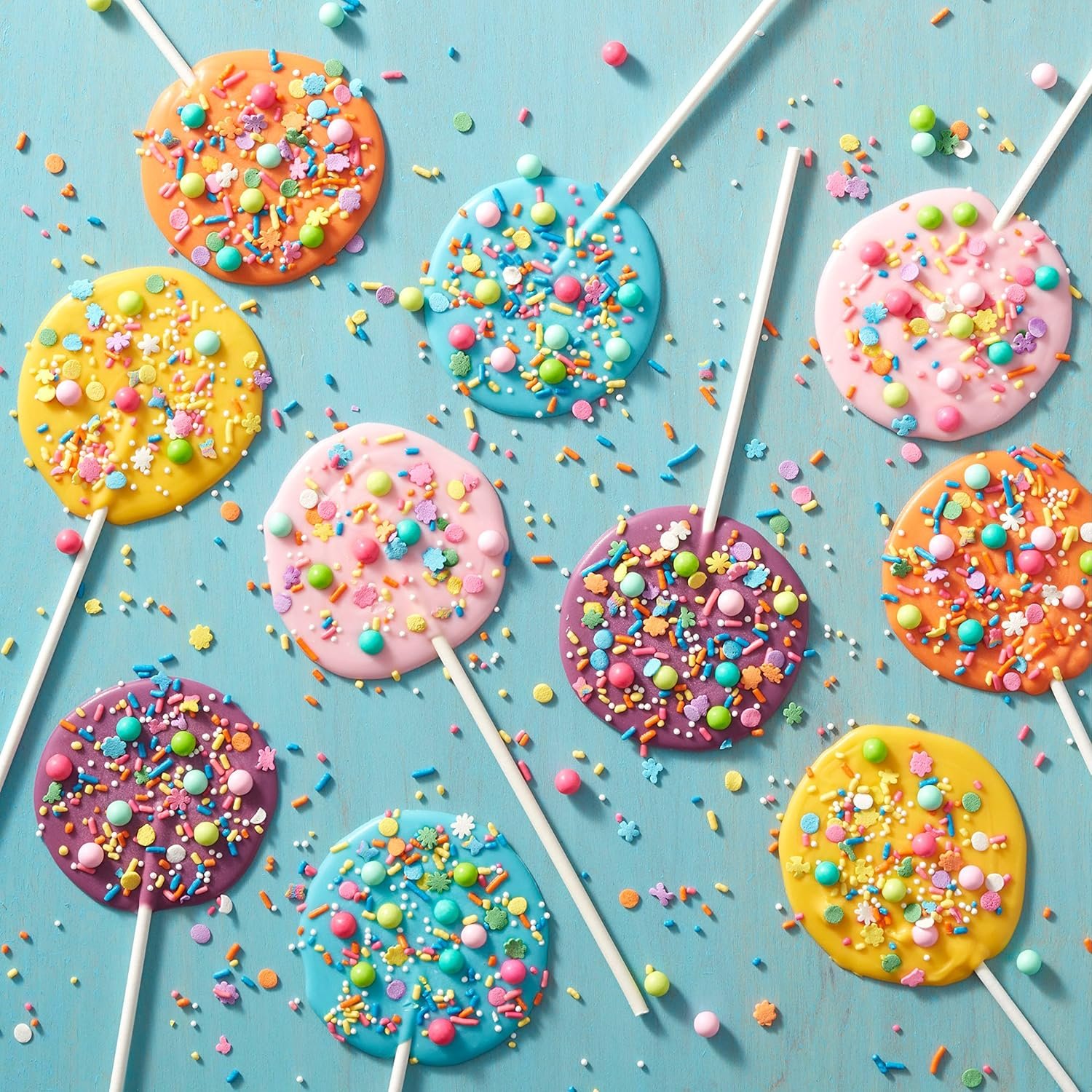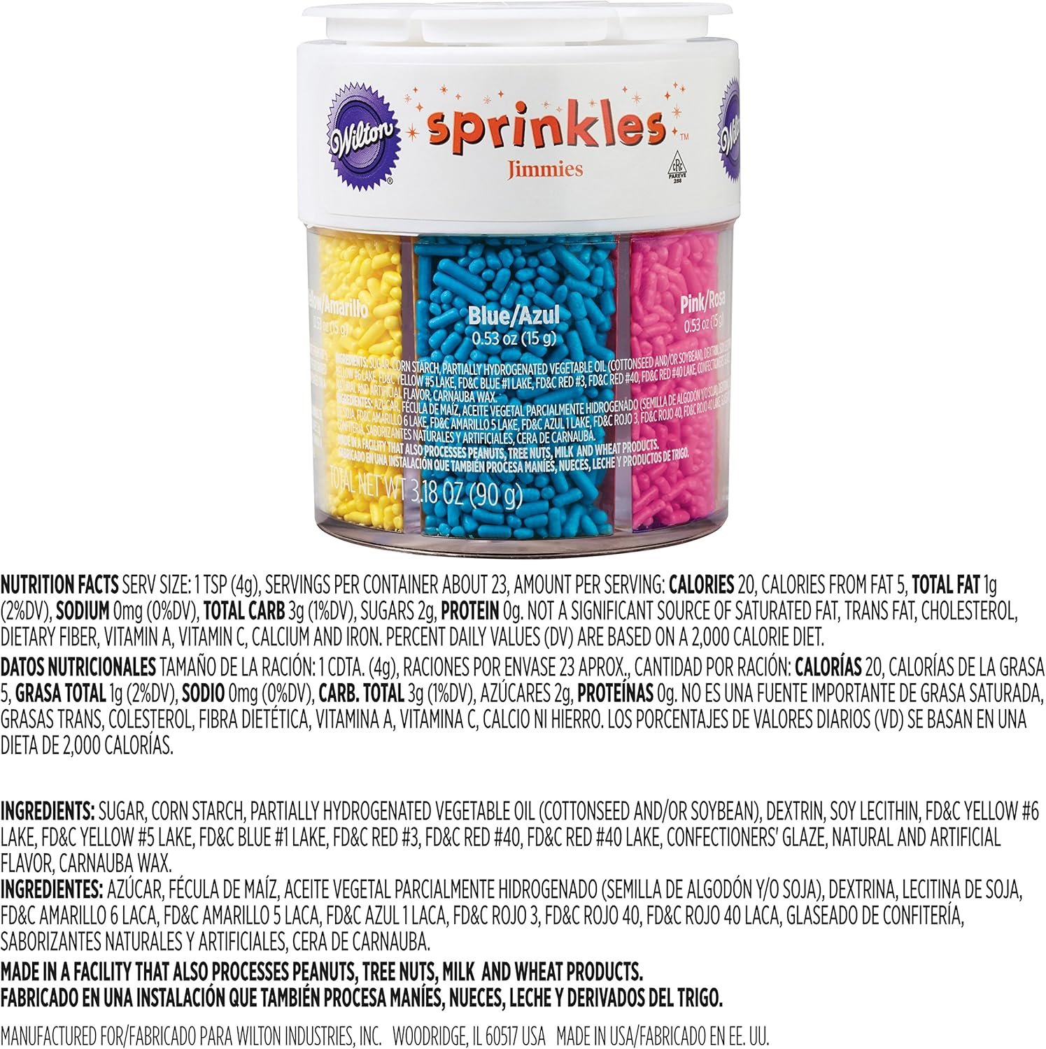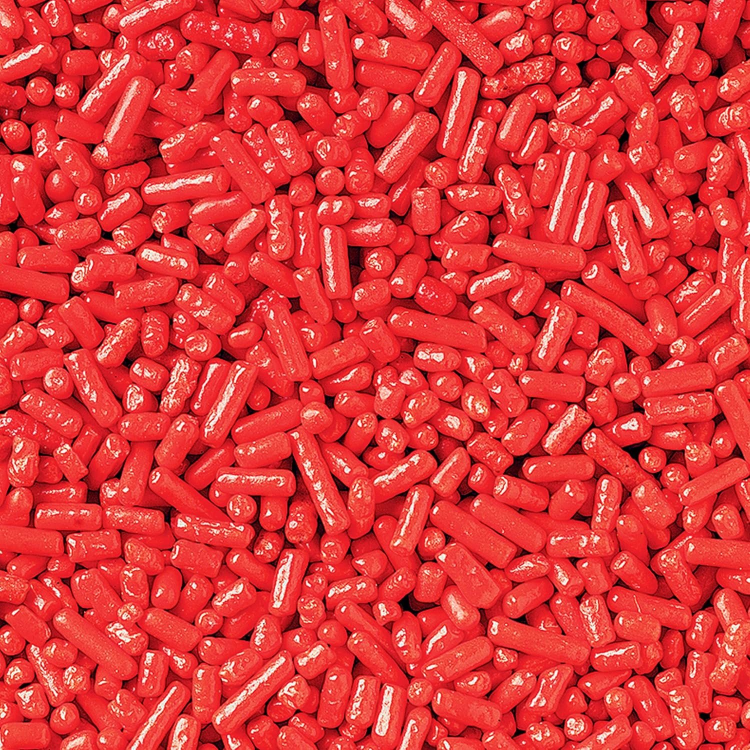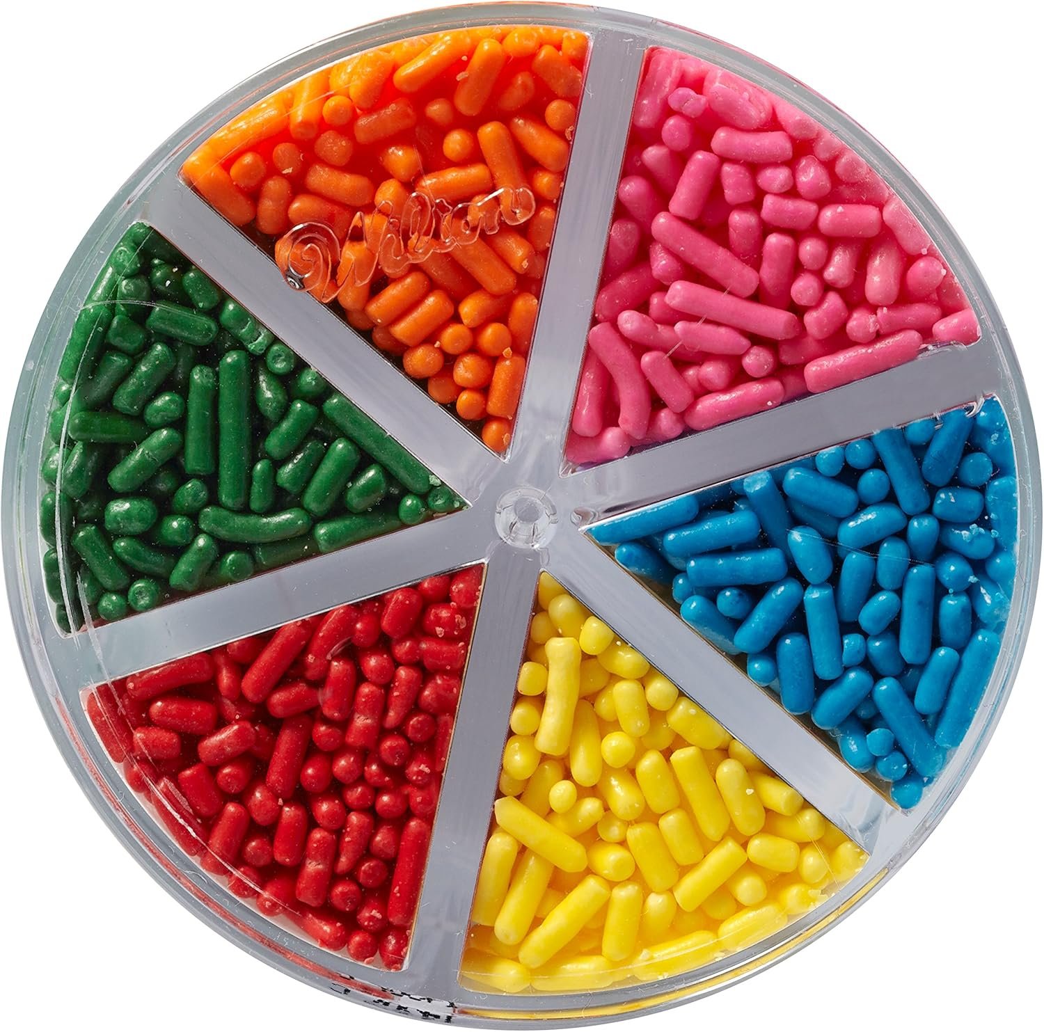 Sprinkle your treats with sweet color using this assortment of jimmies in blue, red, green, yellow, orange, and pink. These rainbow sprinkles are great for cupcakes, cakes and other desserts.