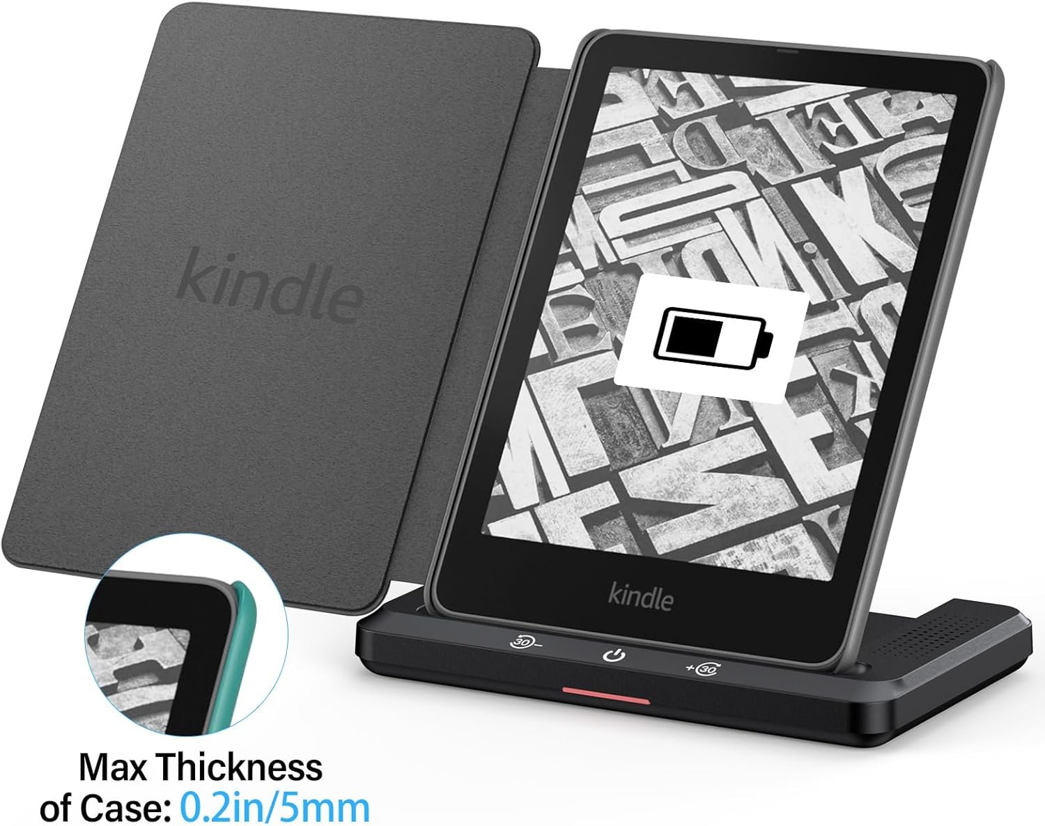 Charge with Case On! No need to remove your case — this dock works with most Kindle covers up to 5mm thick. Just drop and charge!⚠️ Note: Metal or magnetic cases may block charging. For best results, use without those.