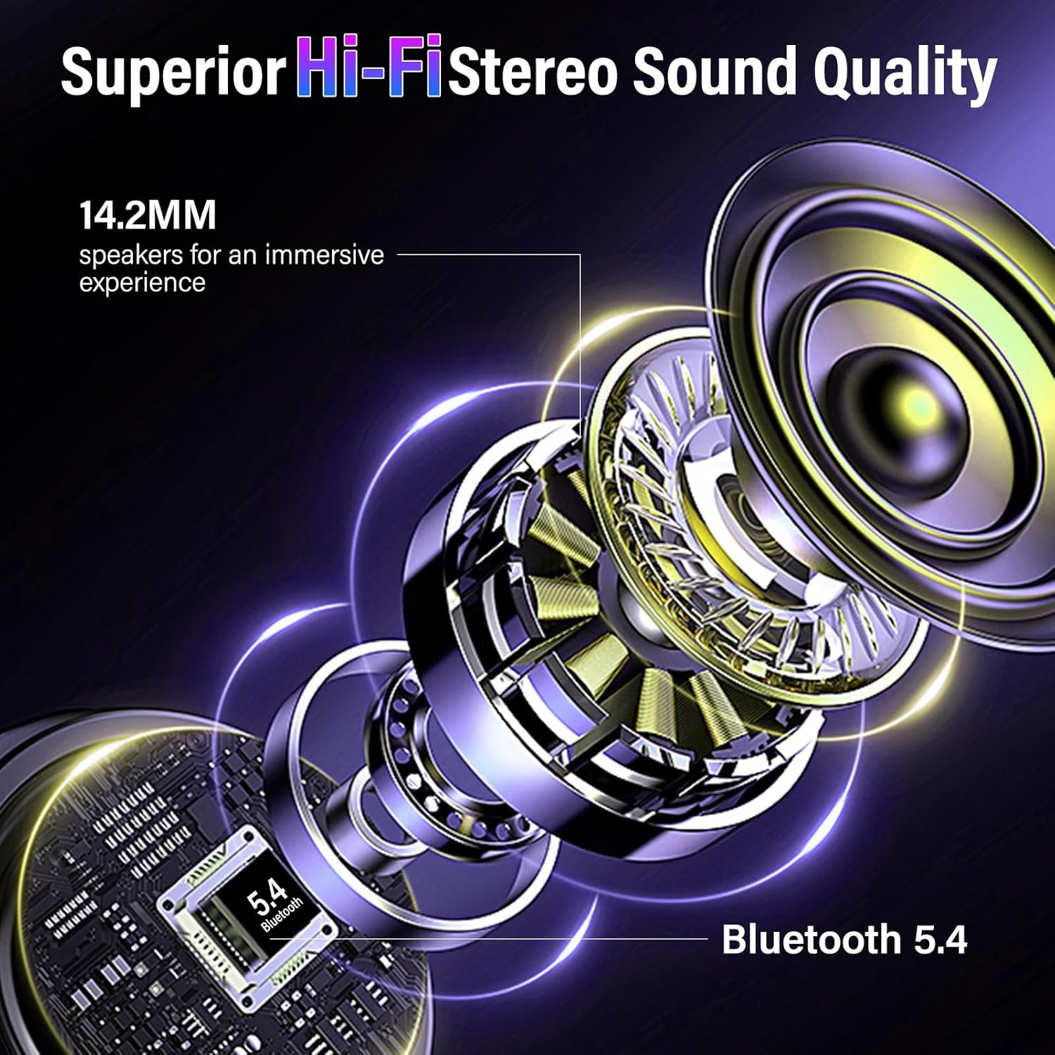 Hi-Fi Sound Quality & 5 EQ Modes: The wireless earphones feature 14.2mm diaphragm speaker drivers that deliver pristine audio and clear output for all music genres. Whether you’re vibing to hip-hop beats, relaxing with jazz, or diving into podcasts, every detail comes through with clarity. Choose from 5 customizable EQ modes—Standard, Rock, Jazz, Pop, and Classic—directly from the charging case. Easily switch your sound style to match your mood or genre and enjoy music exactly how you like it.