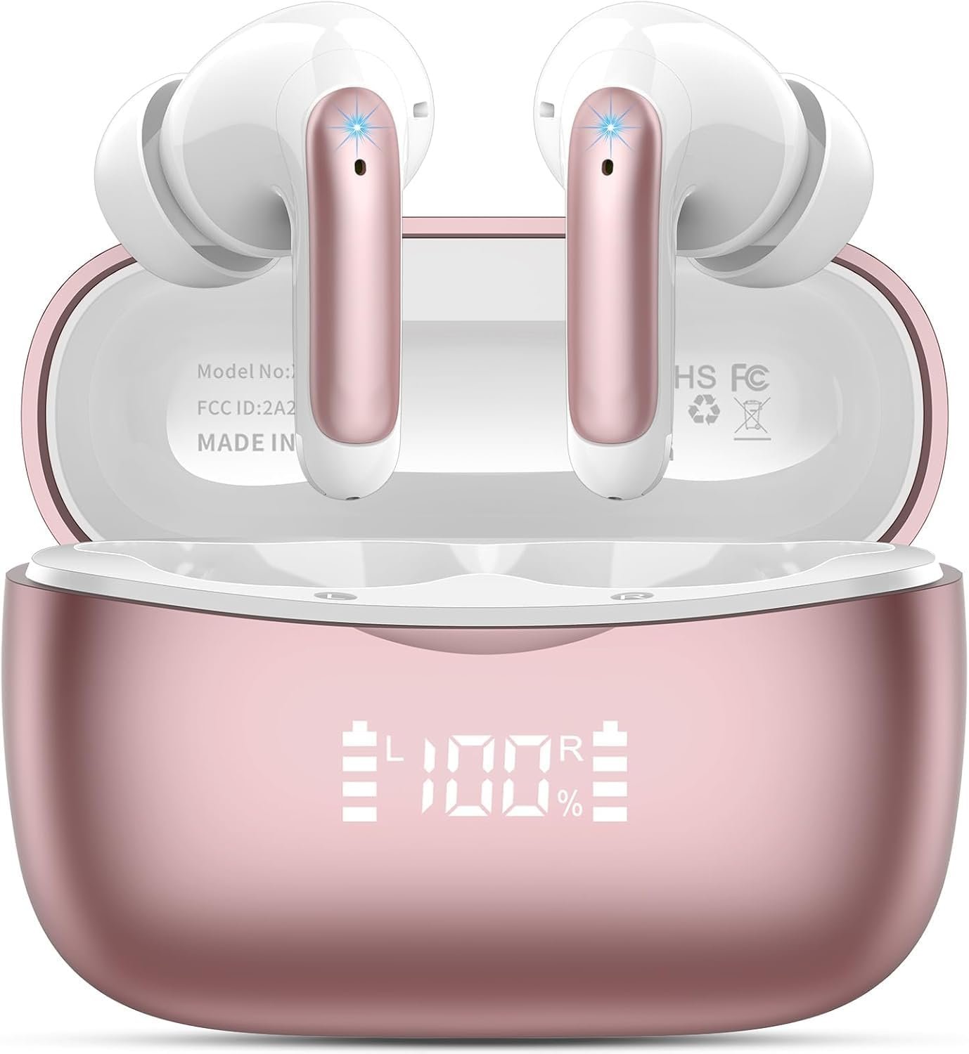 56-Hour Playback Time and LED Display: The wireless earbuds can provide up to 8 hours of high-quality sound on a single charge of 1.5 hours, with a total playback time of up to 56 hours. Whether you are in the gym, office, on the bus or at home, you can immerse yourself in the concert-like stereo field effect. The LED display accurately shows the remaining power and charging progress of the wireless headphones. Note: Please fully charge before first use.