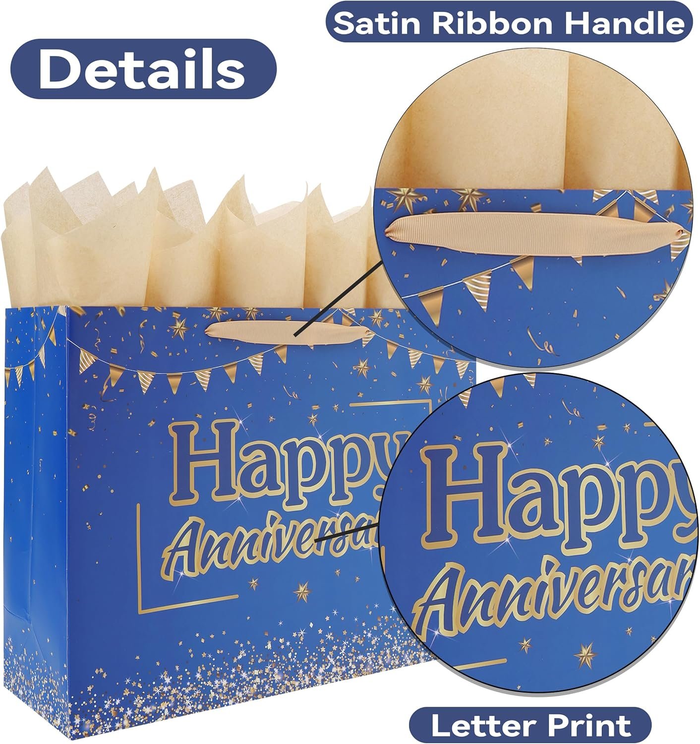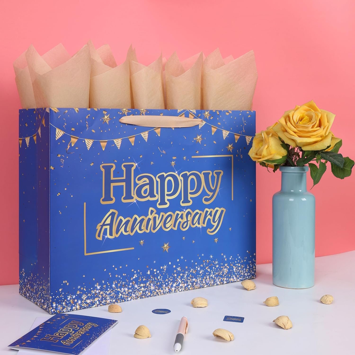 Be the first to review “wishinside 16.5” Extra Large Anniversary Blue Gift Bag Set with Handles, Greeting Card, Tissue Papers and Stickers for Men Husband, for Anniversary Party, Wedding Party, 1 Pcs”