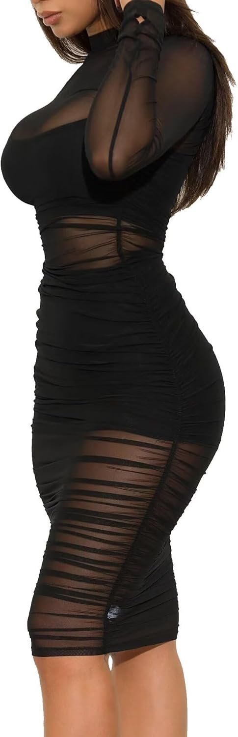 Sprifloral Women Sexy See through Dress – Long Sleeve Turtleneck Neck Colorful Sheer Mesh Overlay Club Maxi DressSexy sheer mesh dress perfect for party, club, night out. You got a lot of compliments on it. Long bodycon dress fully show your perfect shape. See through overlay dress pair with bikini, romper or playsuit. There is a very popular way to wear.
