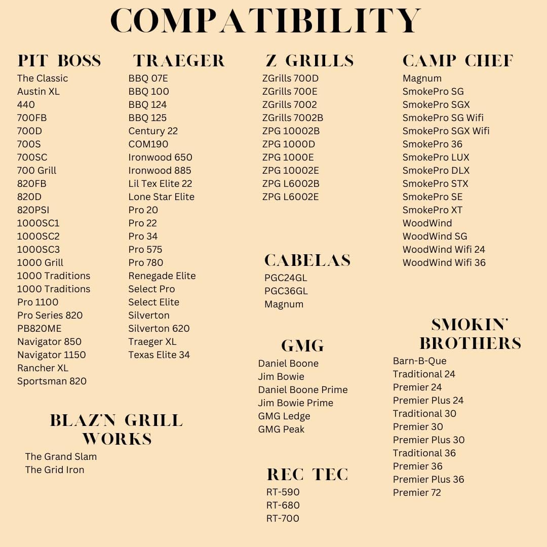 VERSATILE FIT: Designed to fit most full-sized pellet grills including GMG, Traeger, Pit Boss, Camp Chef, Rec-Tec, Smoke Hollow, and more