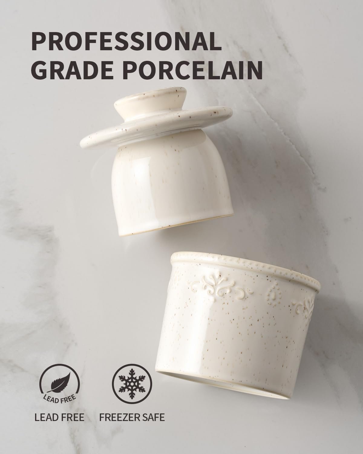 Durable&Healthy Porcelain: XELA butter crock is made from durable porcelain, premium lead-free, chip-resistant. Never worry about harmful substance leaching into your food. XELA butter jar strong and safe to put in the freezer and dishwasher.