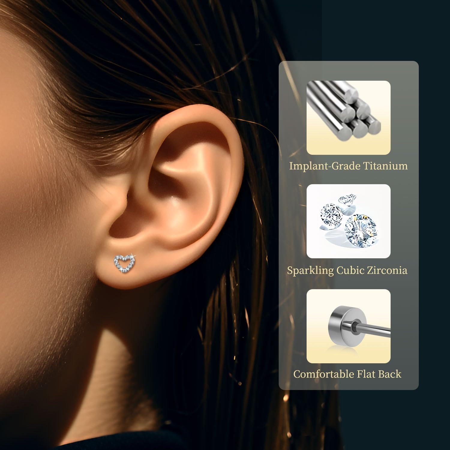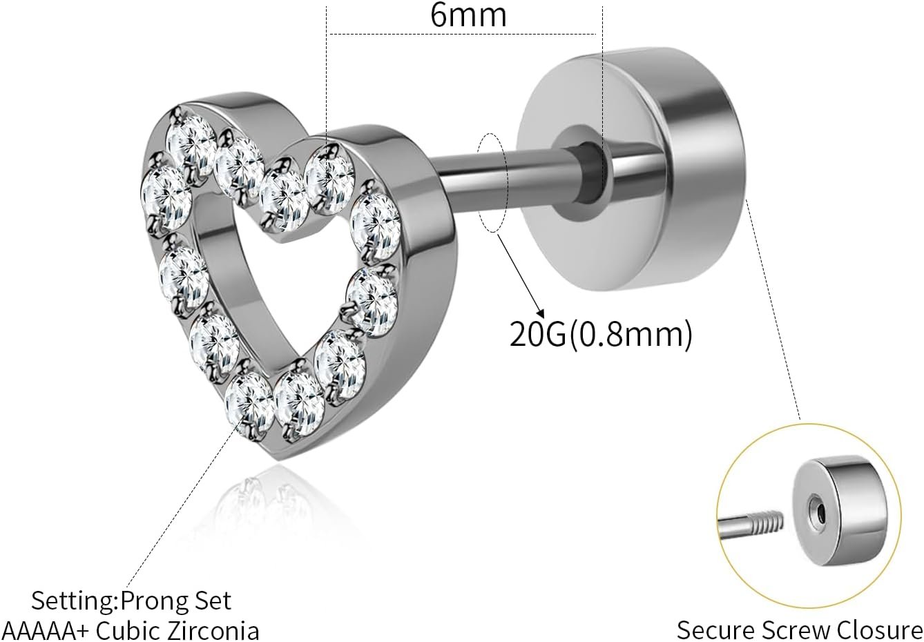 Be the first to review “XUU Titanium Flat Back Stud Earrings, 20G 8mm Post Screw Back, Shining Shape CZ Crystal, Hypoallergenic Tragus, Helix, Cartilage Jewelry For Women, Pair”