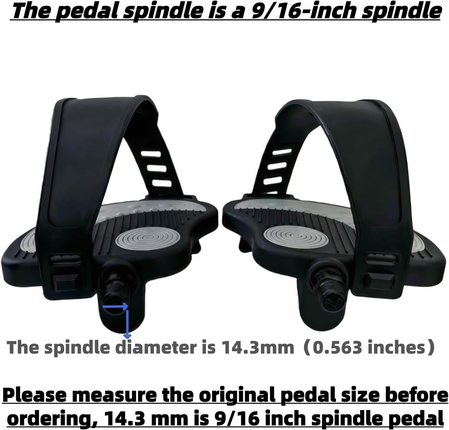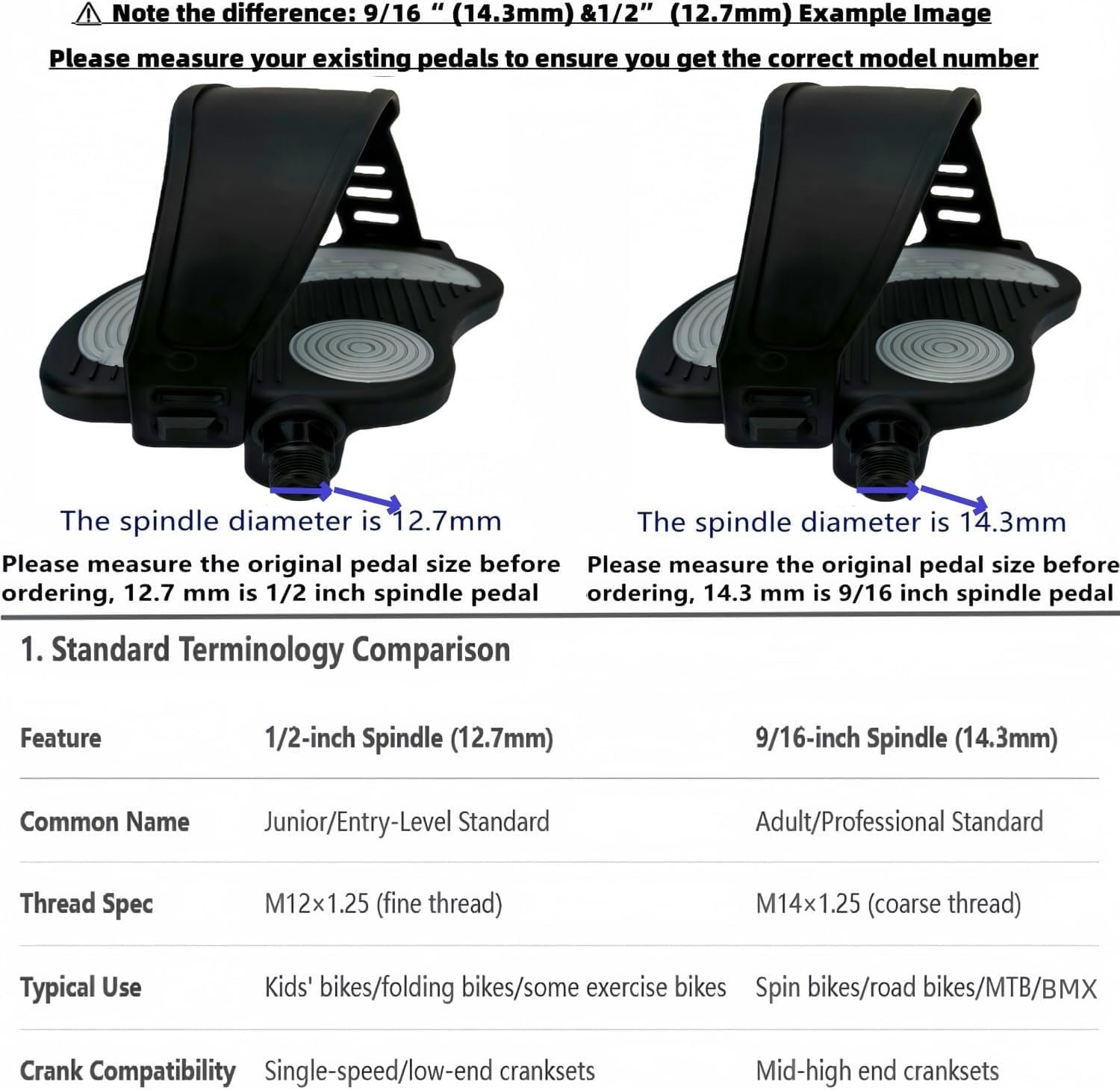 ⚡【Universal 9/16″ Spindle Fit】✓ Peloton/Schwinn IC4/Sunny Health Verified:98% compatibility rate,✓ Precision 14.3mm Spindle:±0.02mm tolerance (ISO 2768-f), ✓ Size Options:▶ Platform: 5.5″L x 4.7″W (14x12cm)▶ Straps: 12.6″ adjustable (32cm)