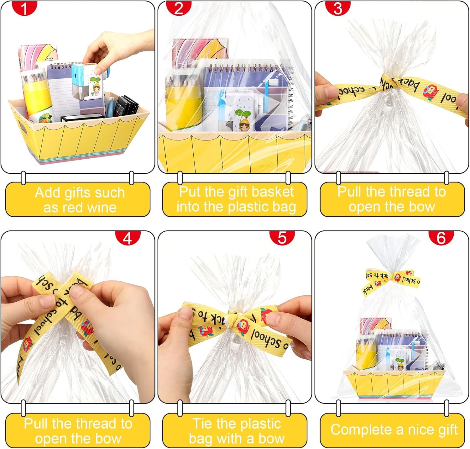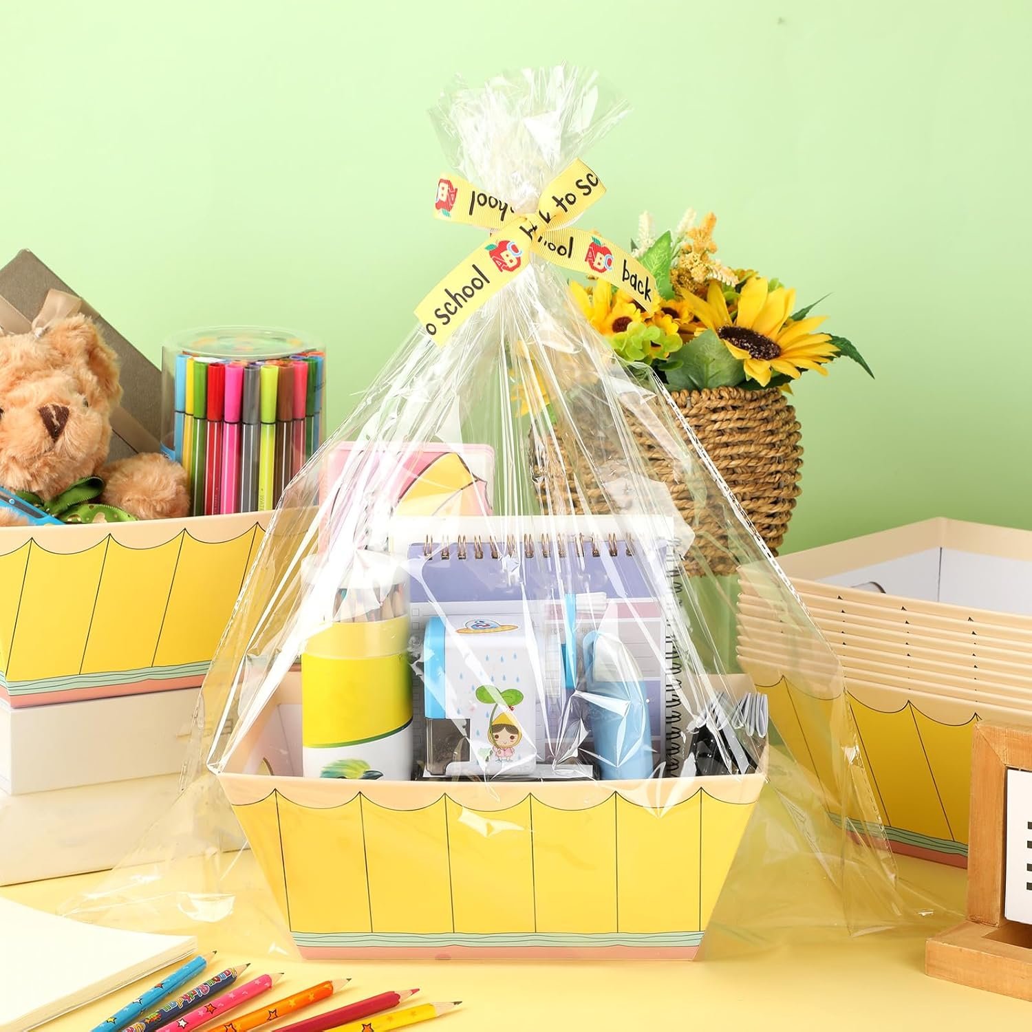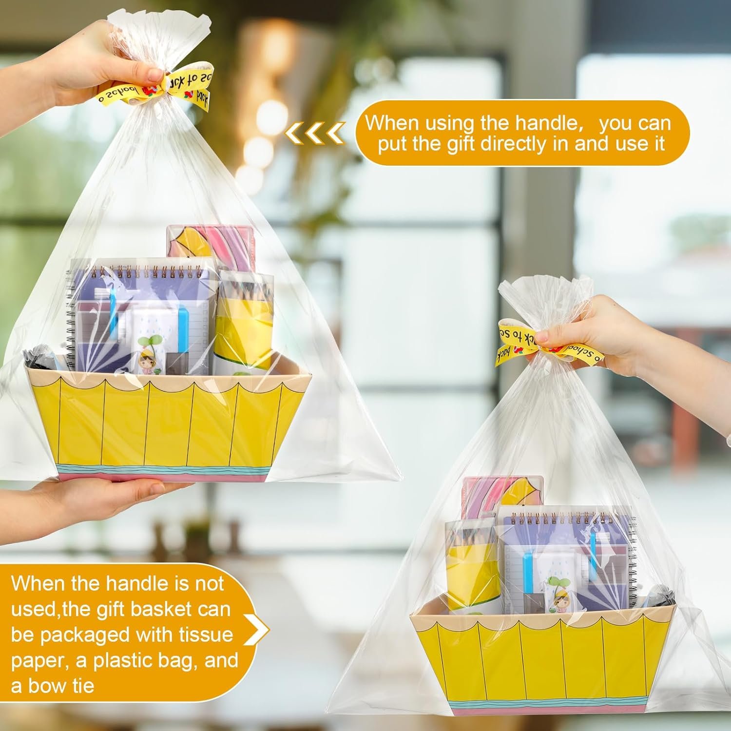 Gift Basket Kit: the package includes 12 pcs empty gift baskets, 12 pcs basket bags and 12 pcs back to school themed ribbon, making the gift basket as simple as possible, enough to meet your needs for gift wrapping and decoration