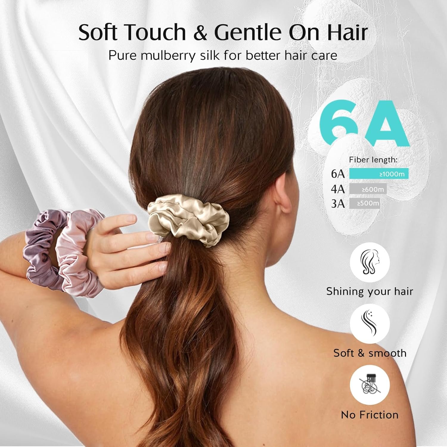 Care For Your Hair: Different from satin or cotton scrunchies, Mulberry Silk scrunchies causes less friction and tension. Natural mulberry silk scrunchies help to keep your hair soft, shiny, reduce hair loss and split ends. Keep your hair looking its best.